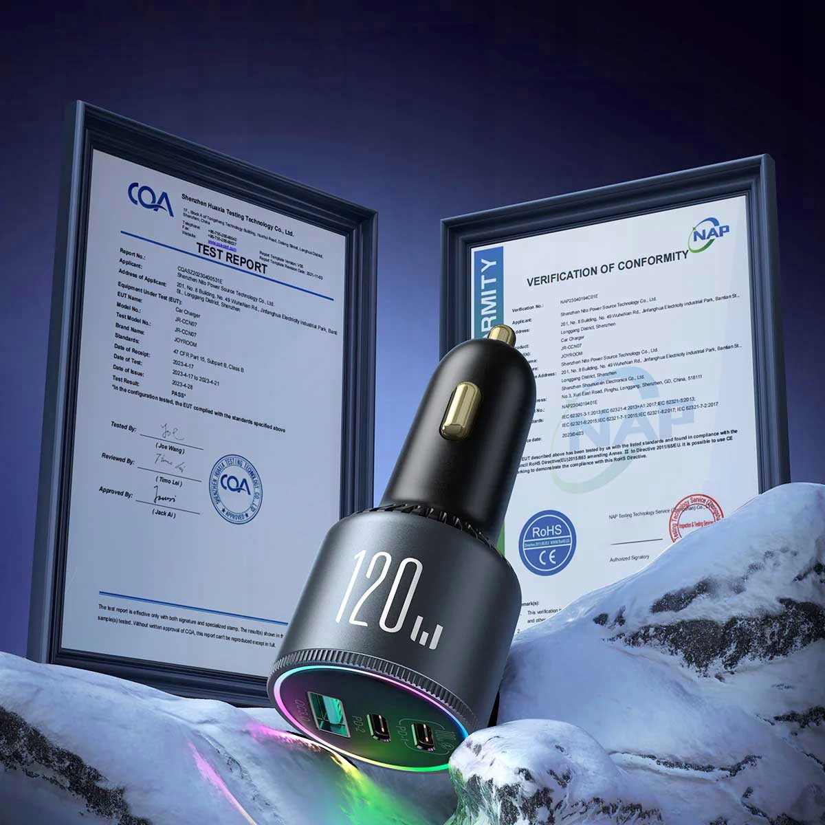 Joyroom JR-CCN07 с выходной мощностью 120 Вт гарантирует, что ваши устройства всегда будут готовы к работе. Благодаря поддержке различных протоколов быстрой зарядки он обеспечивает оптимальную эффективность и сокращает время, необходимое для полной зарядки аккумулятора.