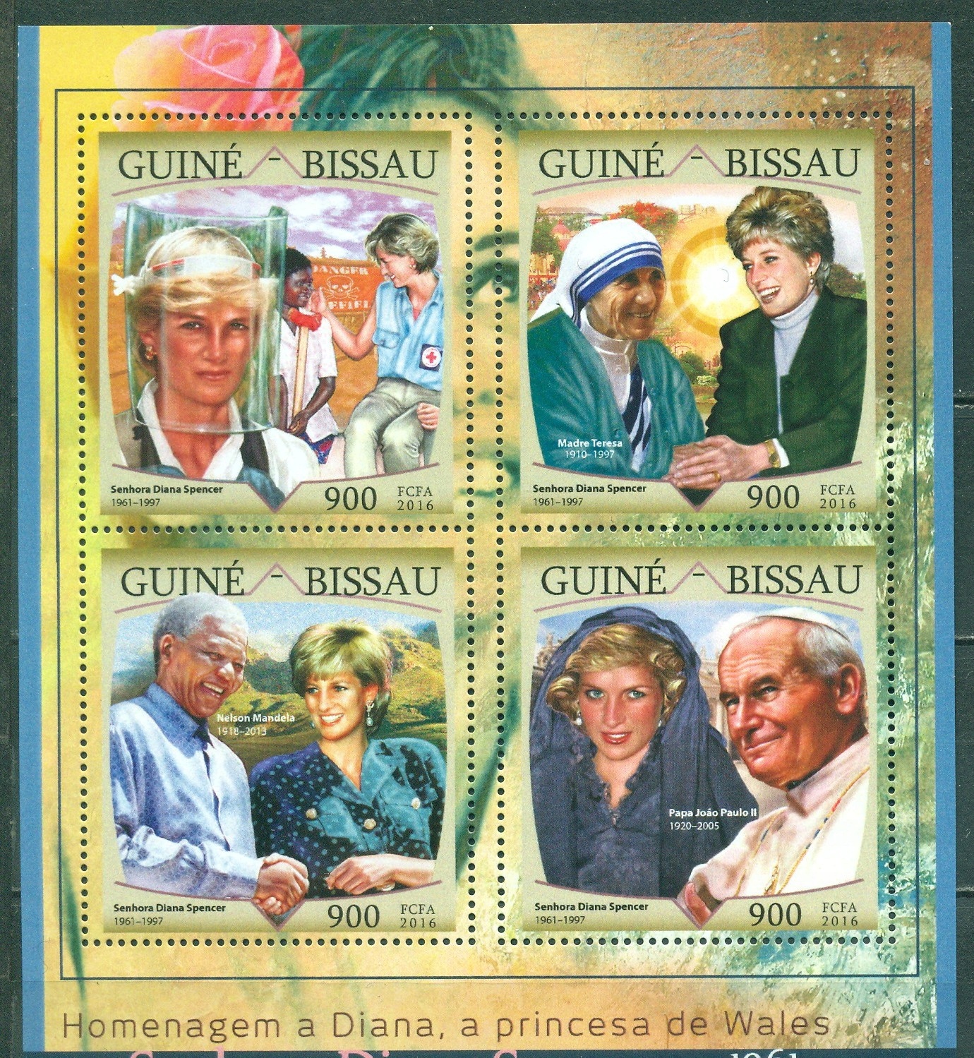 JP II. MANDELA. DIANA.BISSAU. Mi ark. A**2016r