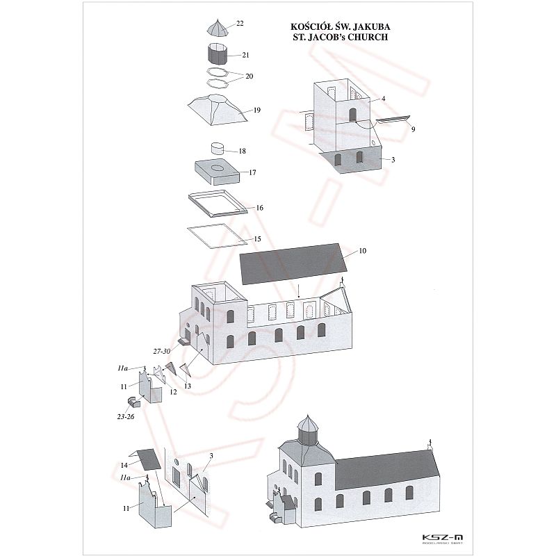 - количество деталей: церковь Св. Якуба 24/100, гардероб 65, сторожка 29, конюшня 16