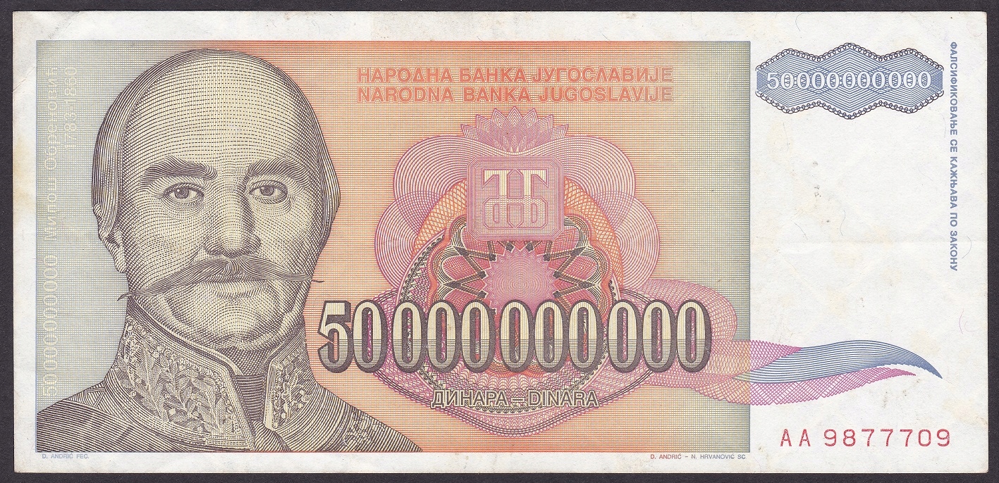 JUGOSŁAWIA 50000000000 Dinara 1993 P.136