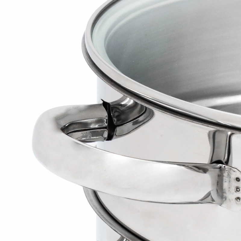 >✔ Крышка из закаленного стекла. Оснащен стальным ободом и ручкой, а также отверстием для слива и регулирования количества пара внутри сосуда.