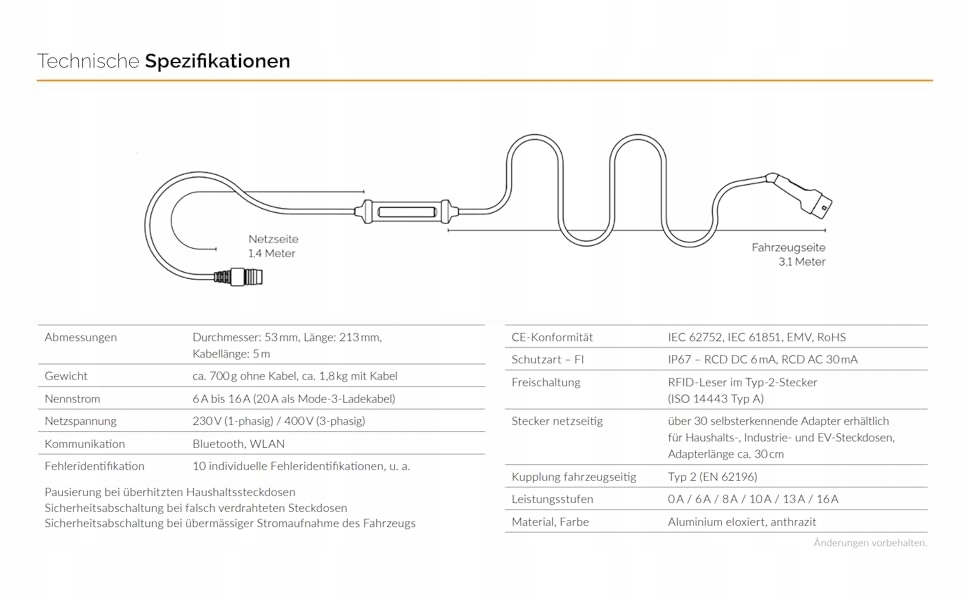 Благодаря нагрузке на колесах до 3 тонн, вы можете безопасно двигаться по нему, он является пылеипродажным и водонепроницаемым в соответствии со стандартом IP67 и может использоваться в любом месте при температуре от -30 до +50 градусов Цельсиса. Зарядная станция также может использоваться в качестве настенной коробки (с ручкой на стене) или в качестве зарядного кабеля (с адаптером типа 2)