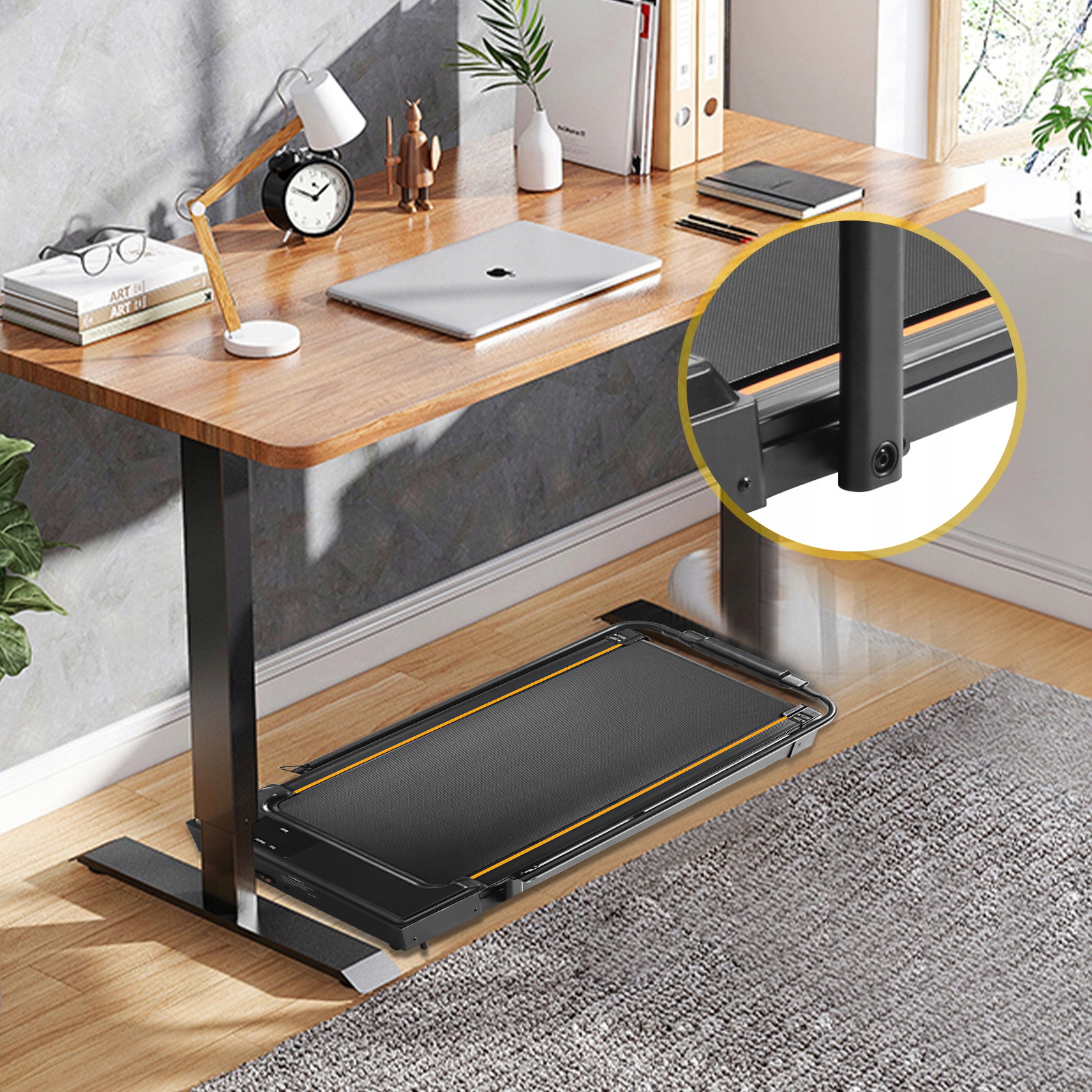 Предлагаемая нами беговая дорожка — идеальное решение для людей, которые ищут функциональный домашний тренажер. Благодаря инновационному дизайну его можно легко сложить с помощью ручек, что значительно упрощает его хранение. Его ультратонкий дизайн позволяет разместить его даже в ограниченном пространстве, а храня его под столом, вы экономите место дома. Высота беговой дорожки в сложенном виде составляет всего 12 см. Кроме того, беговую дорожку можно поставить в вертикальное положение, что еще больше упрощает ее хранение в различных укромных уголках и щелях. Это оборудование, которое не занимает много места и при этом позволяет проводить интенсивные тренировки в комфортных условиях.