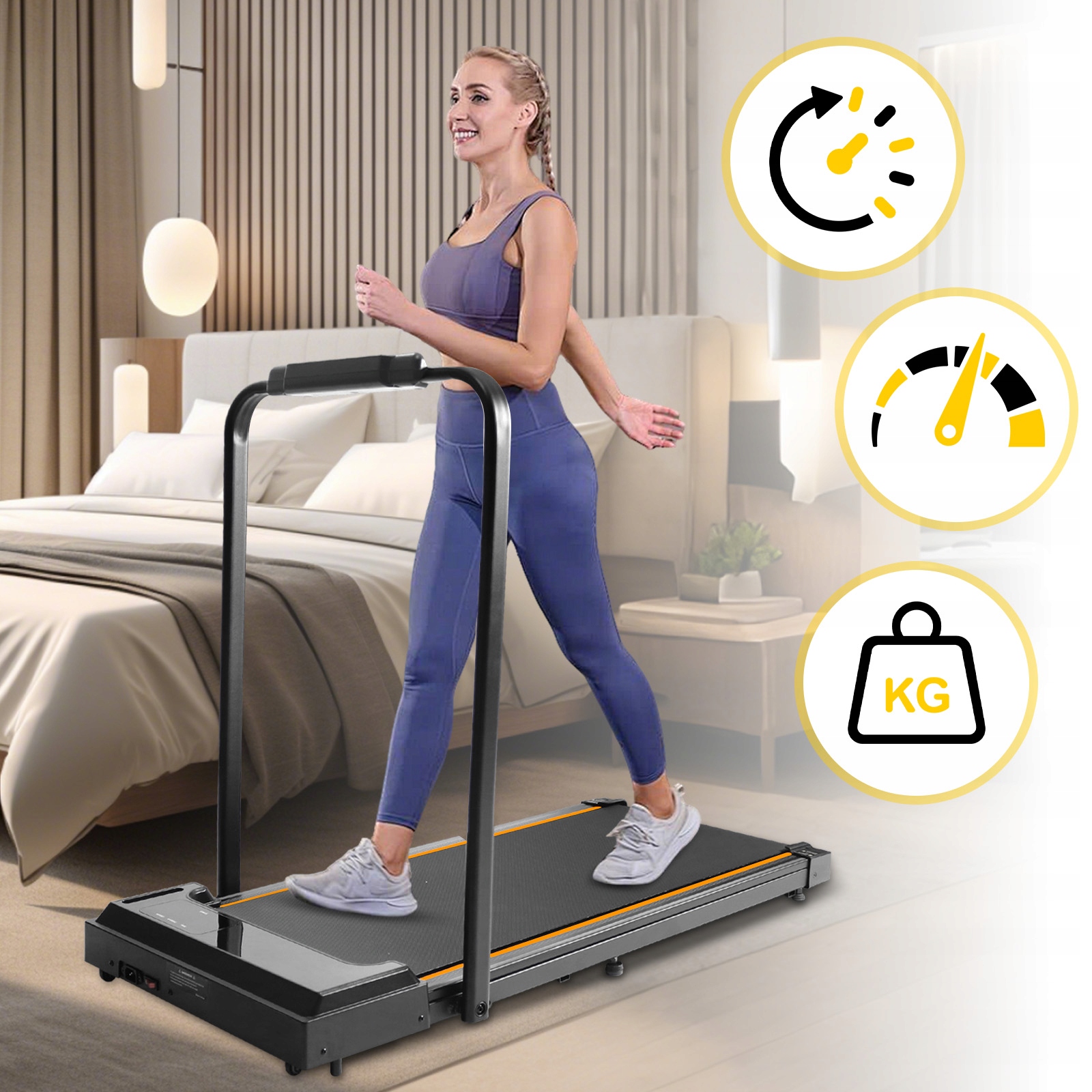 ✅ Вы можете использовать беговую дорожку, когда захотите, поскольку встроенный механизм работает очень тихо, что обеспечит комфорт вам и окружающим устройства.