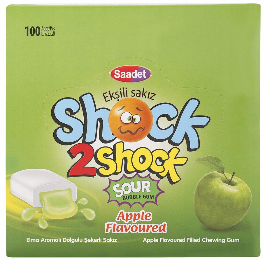 ЖЕВАТЕЛЬНАЯ РЕЗИНКА SHOCK 2 SOUR СО ВКУСОМ ЯБЛОКА 400Г