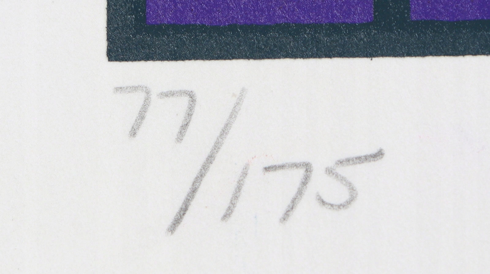 Техника: шелкография/бумага. Работа подписана внизу композиции под номером 77/175.