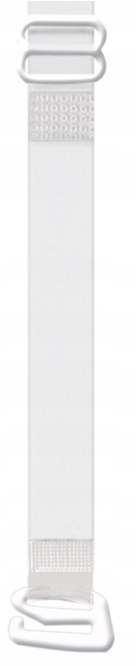 Прозрачный силиконовый ремешок на шее. Регулируемый. У них белые металлические крючки и регуляторы, ремни шириной 10 мм.