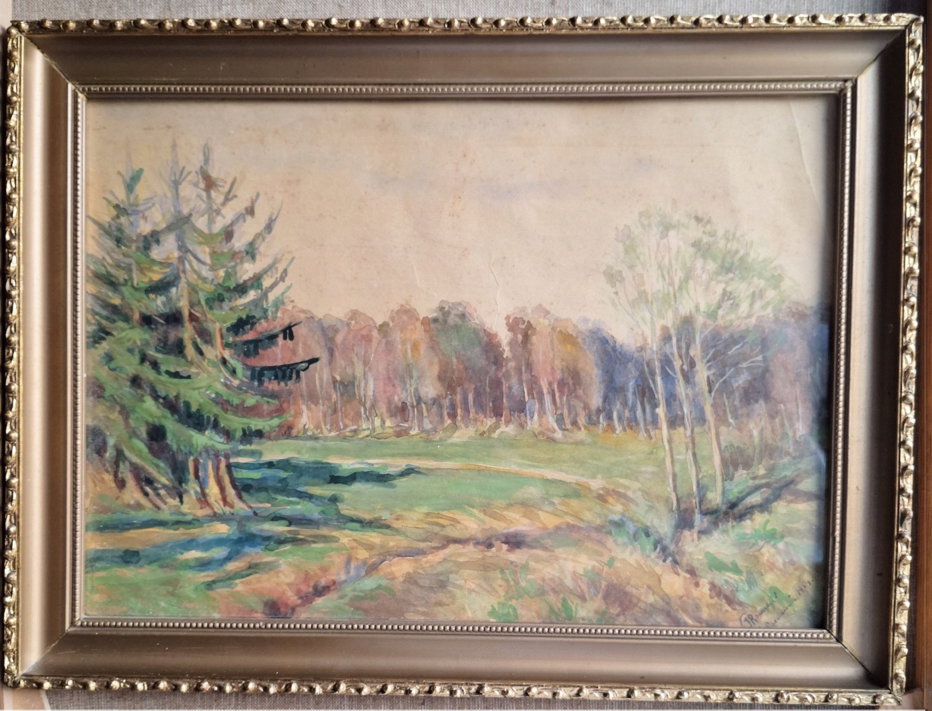 Юлиуш Роммель 1954 Пейзаж ЛЕСНАЯ ПОЛЯНА Акварель ОРИГИНАЛ Уникальная