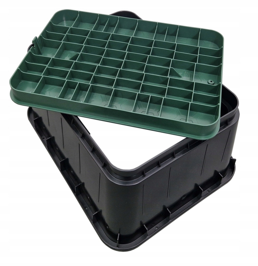Закрепление клапана jumbo b> представляет собой прямоугольную коробку ДНК с нанесенной и затянутой крышкой. Хорошо обеспечивает легкий доступ к электрическим или ручным клапанам, используемым в автоматических ирригационных системах. Уэллс клапана защищают и защищают клапаны от их повреждения. Он предназначен для использования в более крупных садовых установках и общественных местах. Mango Calve Manhoot позволяет разместить в его интерьере до 6 клапанов. Крышка слоя была изготовлена из пластика ( PEHD Polyetylene ), устойчивой к погодным условиям, а также UV Radiation . устойчив к механическому повреждению. Доступ к внутренней части скважины был закреплен с помощью винта некси. Колодец доступен с четырьмя цветами чехлов: зеленый (скрыть) - чтобы прятаться в траве или других зеленых областях, оранжевый (найти) - легко найти, коричневый (дерево) - чтобы спрятаться в коре, серый (камень) - чтобы спрятаться в камне/булыжника