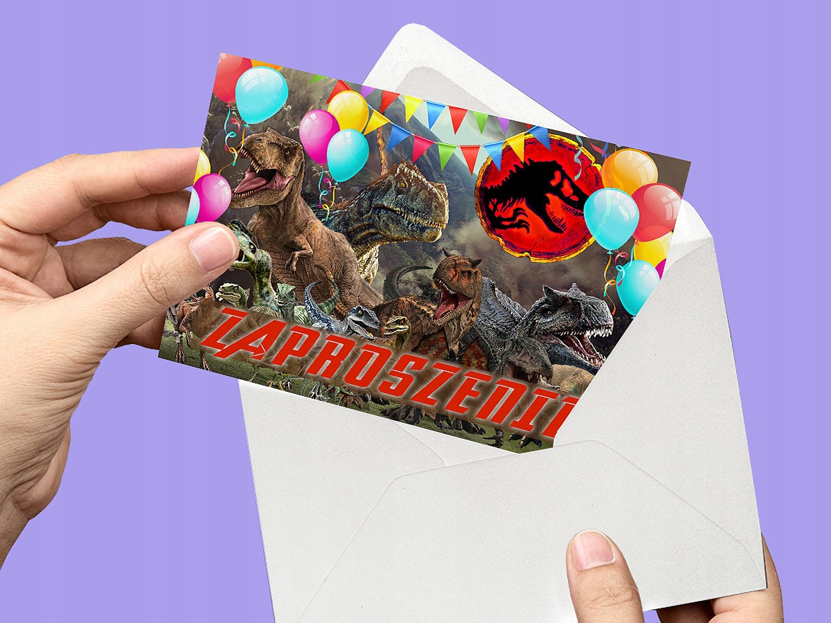 ЮРСКИЕ Т-РЕКСЫ РАПТОРЫ ДИНОЗАВРЫ ПРИГЛАШЕНИЕ НА ДЕНЬ РОЖДЕНИЯ РЕБЕНКА + КОНВЕРТ