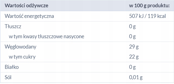 Состав: клюква (49%), вода, сахар, загуститель: Е1422, сироп глюкозно-фруктозный, концентрат черной моркови, регулятор кислотности: лимонная кислота, антиоксидант: аскорбиновая кислота, ароматизатор клюквенный
