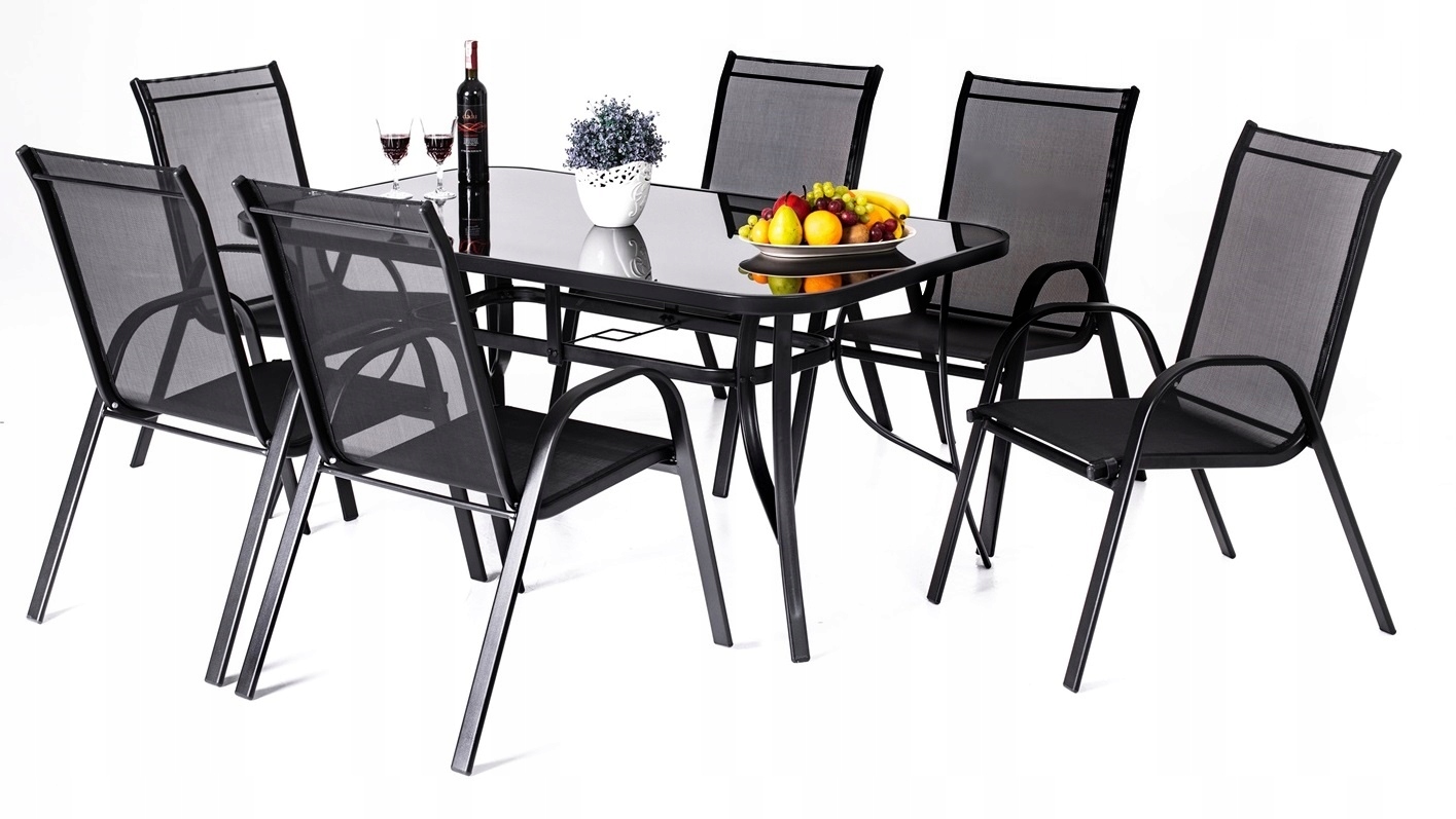 Садовый стол идеально подходит для вашего сада. Каркас имеет двойное порошковое покрытие, что делает этот продукт идеальным для использования как внутри, так и снаружи помещений. Используемые материалы не требуют частого ухода, устойчивы к погодным условиям и не требуют специальных средств по уходу. Ножки дополнительно оснащены пластиковыми чехлами. Столешница имеет столешницу из черного закаленного стекла. 5 мм, с отверстием для вставки садового зонта.