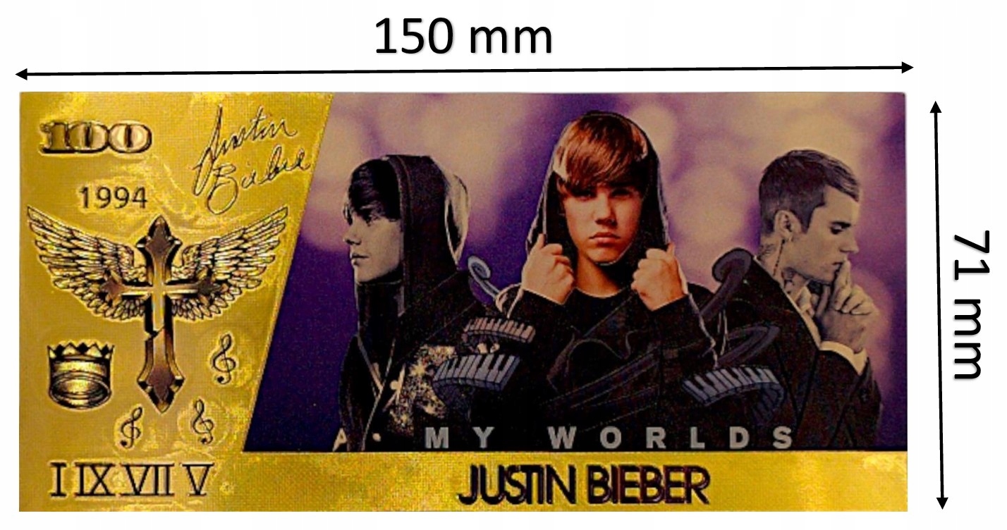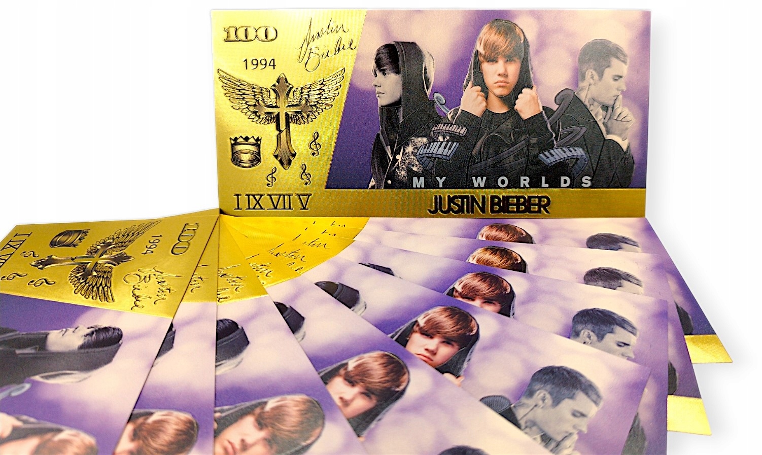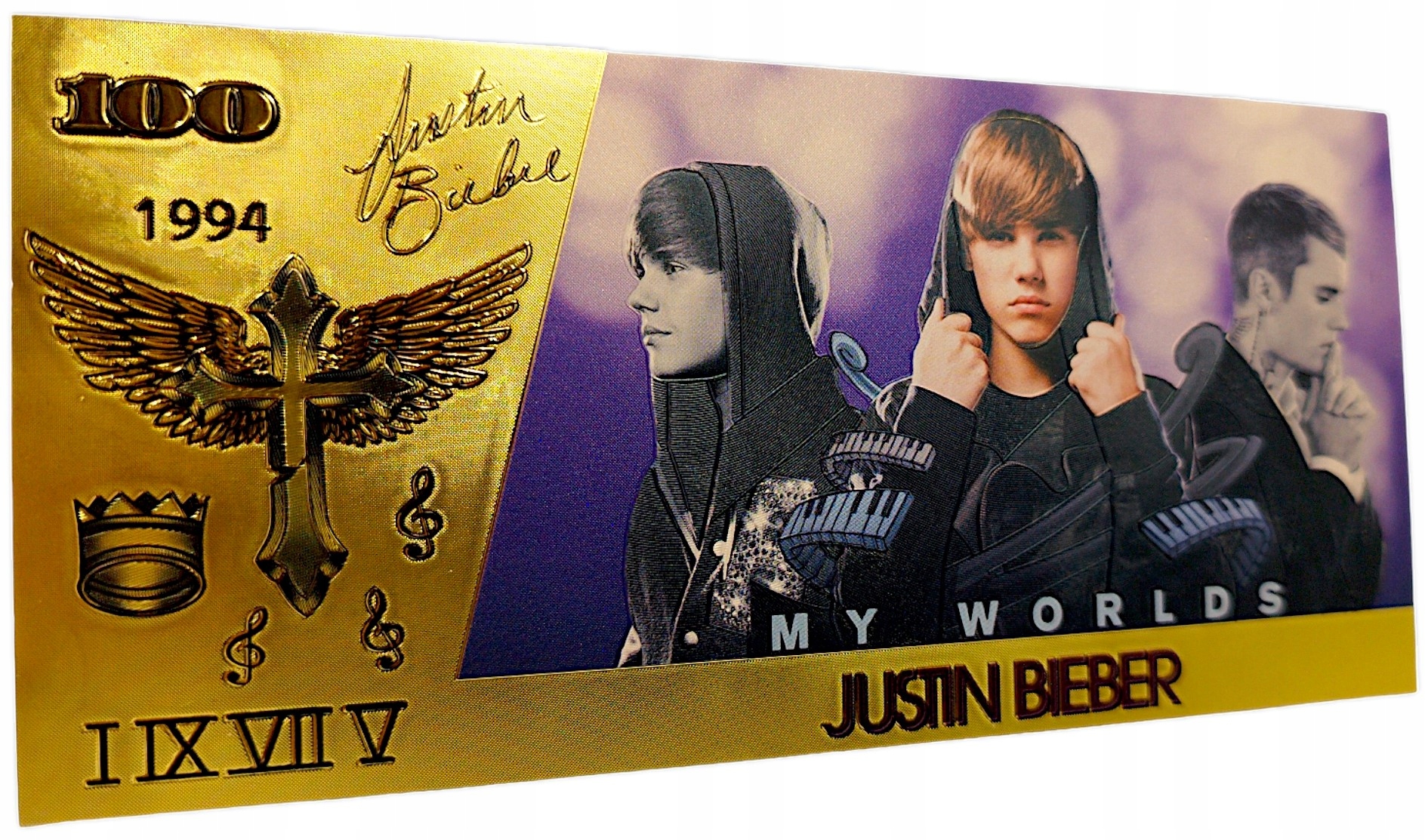 JUSTIN BIEBER Unikatowy ZŁOTY BANKNOT Kolekcjonerski PREZENT DLA FANA