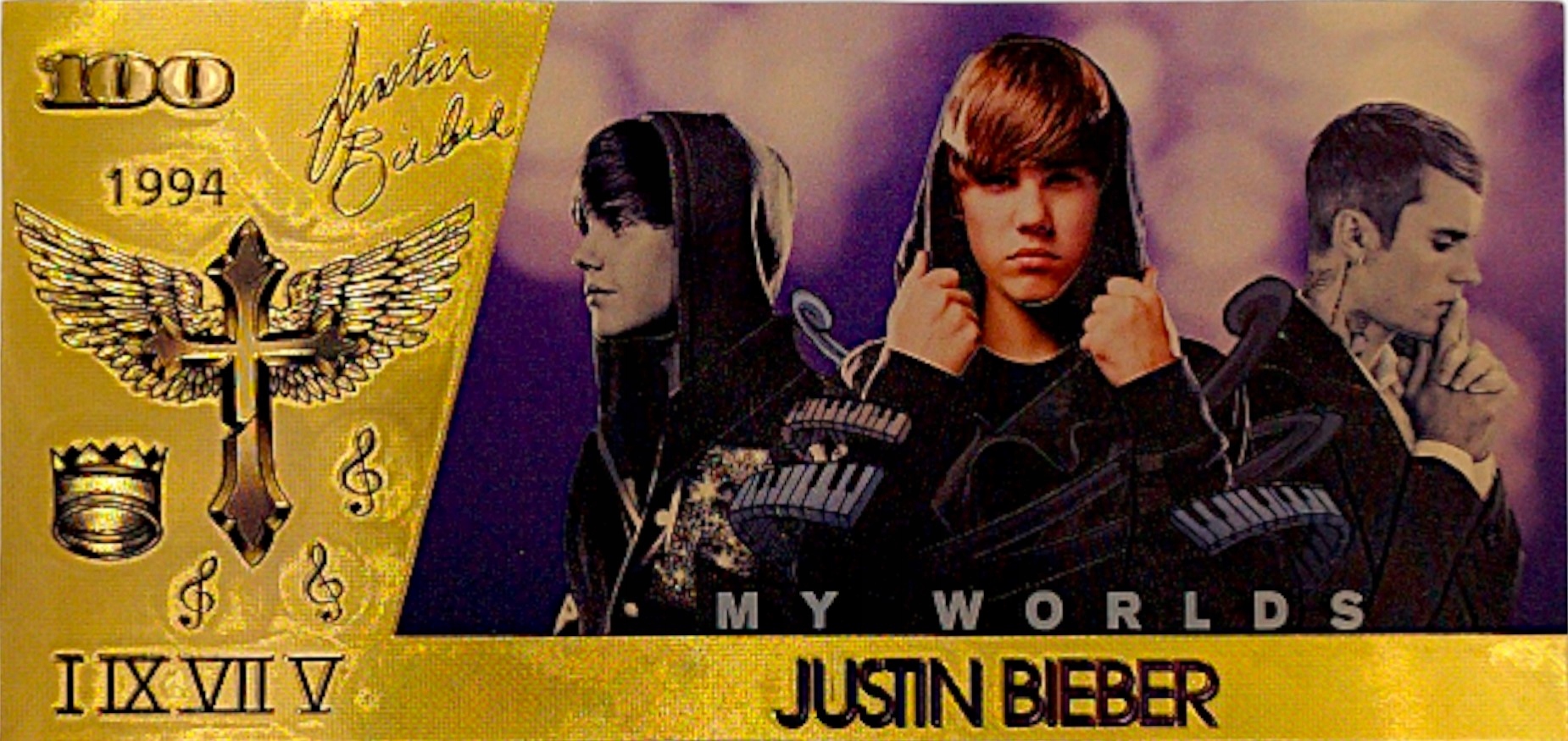 Уникальная позолоченная банкнота с изображением ДЖАСТИНА БИБЕРА