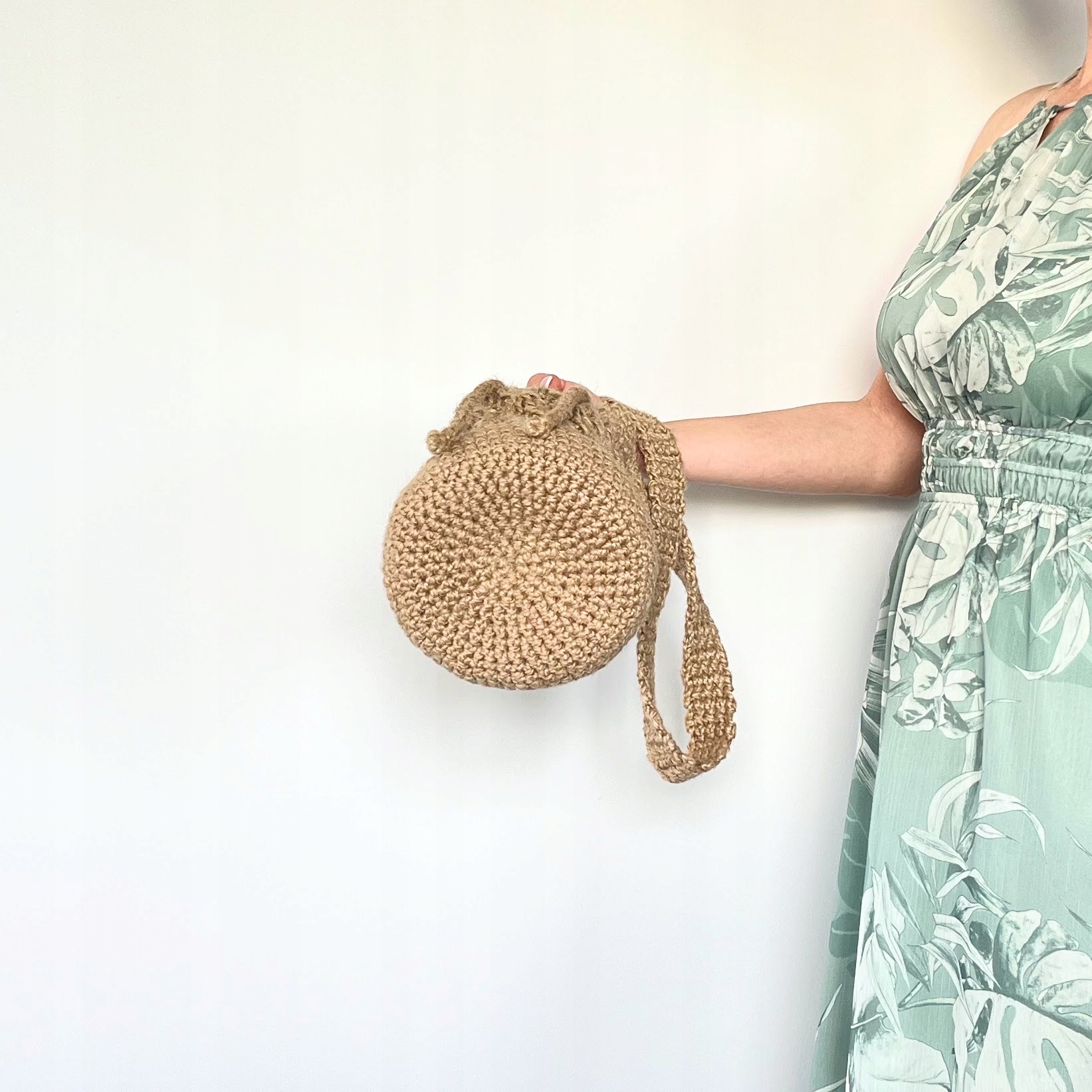 Легкая и натуральная джутовая сумка, связанная вручную крючком.