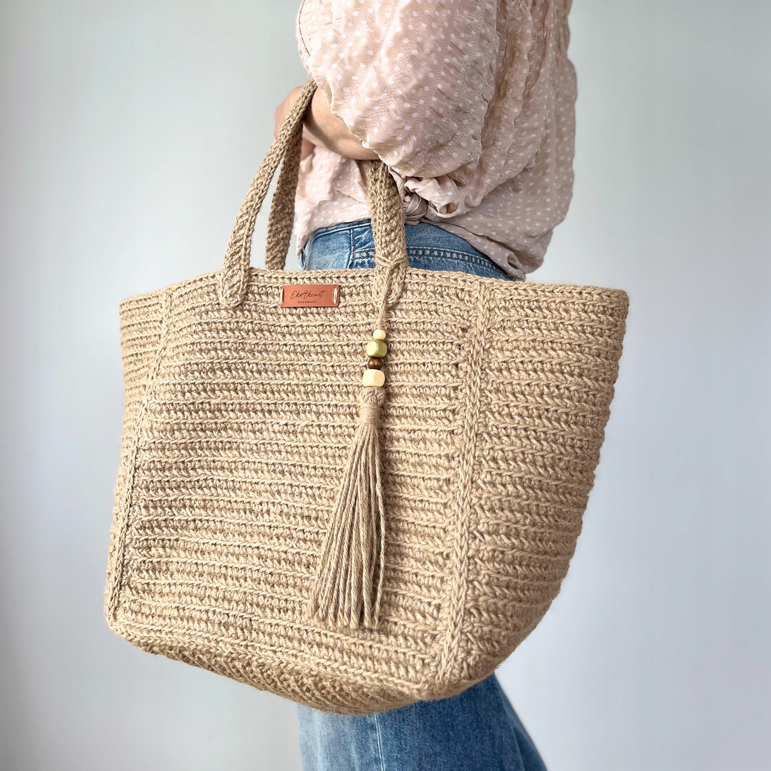 Каждая джутовая сумка крючком изготавливается под заказ, с вниманием к каждой детали.