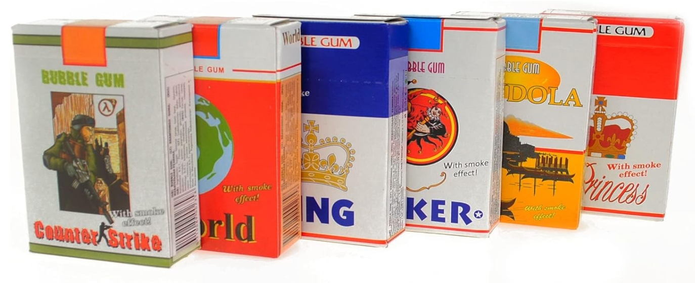 ✅ каучуки упакованы в пакеты , имитирующие реальные пачки сигарет. С старых времен. память о детстве.