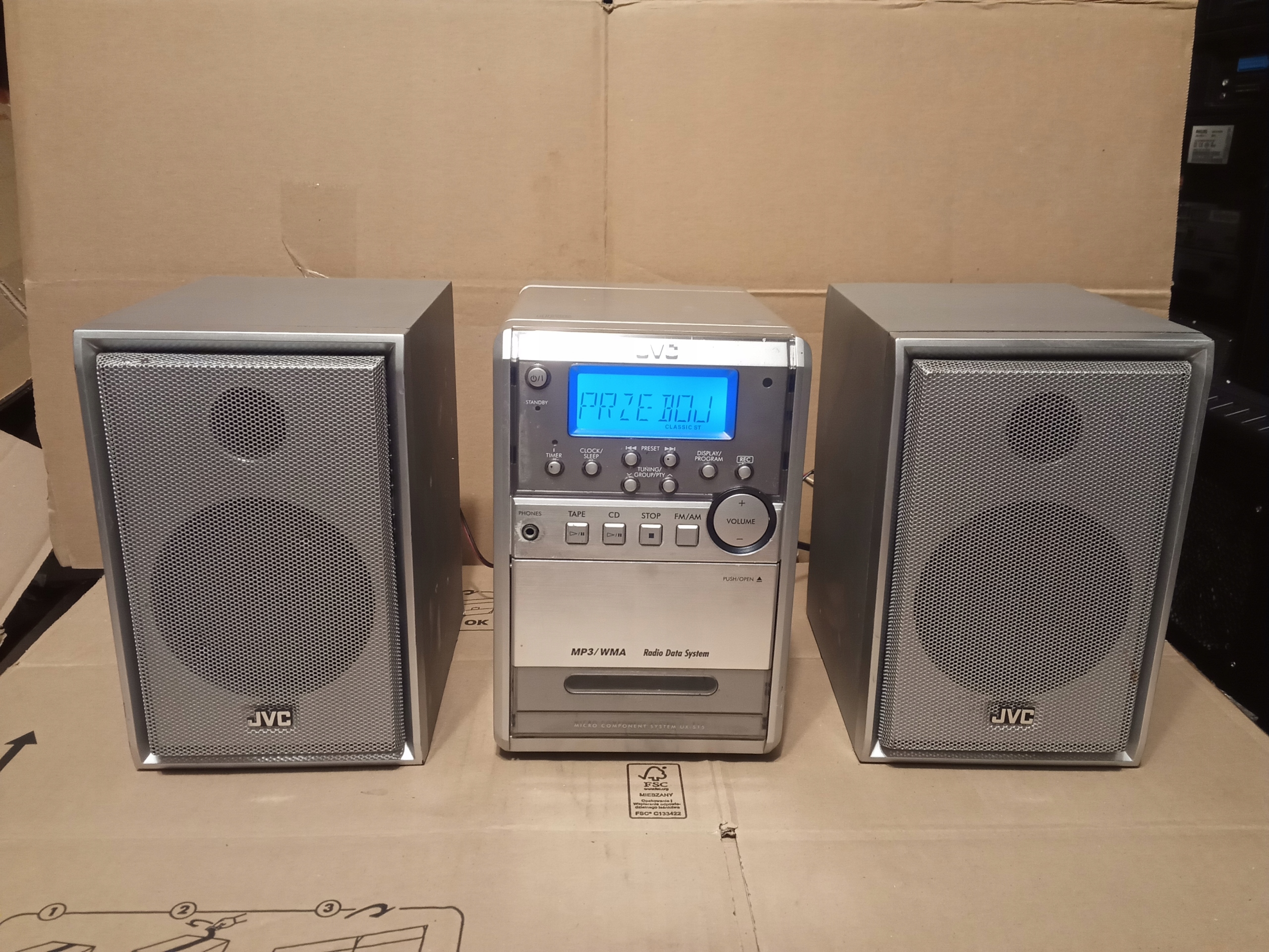 Mini Stereo Tower: JVC CA -UXS15 (CD не читает CDS!, Магнит. И тюнер по порядку, качественно -очень хороший звук, кнопка громкости -то есть, молчание закрыто! Но он переключает звуковые режимы!). В общем, башня играет с приличным звуком. Без пульта дистанционного управления и антенны.