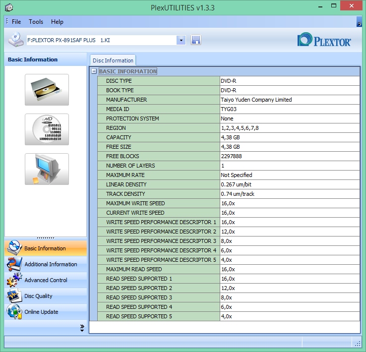 Диск имеет отличное качество и технологию производства от JVC\Taiyo Yuden – и стратегию записи, которая имеет остается неизменным в течение многих лет, а это означает, что даже самые старые приводы DVD-RW не имеют проблем с распознаванием и записью этого носителя DVD-R.