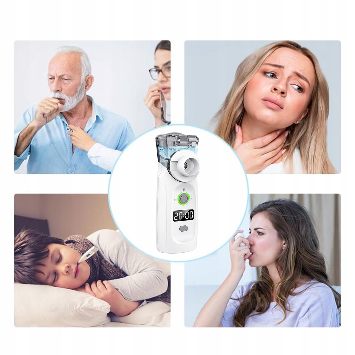 Портативный небулайзер с USB-зарядкой, таймером и дисплеем, небулайзером, маской и мундштуком для детей и взрослых (белый)