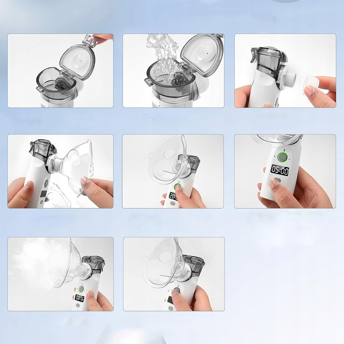 ⭐Компактный и портативный — компактный и легкий дизайн, удобный для переноски. Наклоняемый контейнер для жидкости уменьшает количество остатков. В комплекте: 1 ручной небулайзер, 1 насадка, 2 маски (для детей и взрослых), 1 зарядный кабель USB Type-C, 1 сумка для хранения, 1 краткое руководство и руководство пользователя.