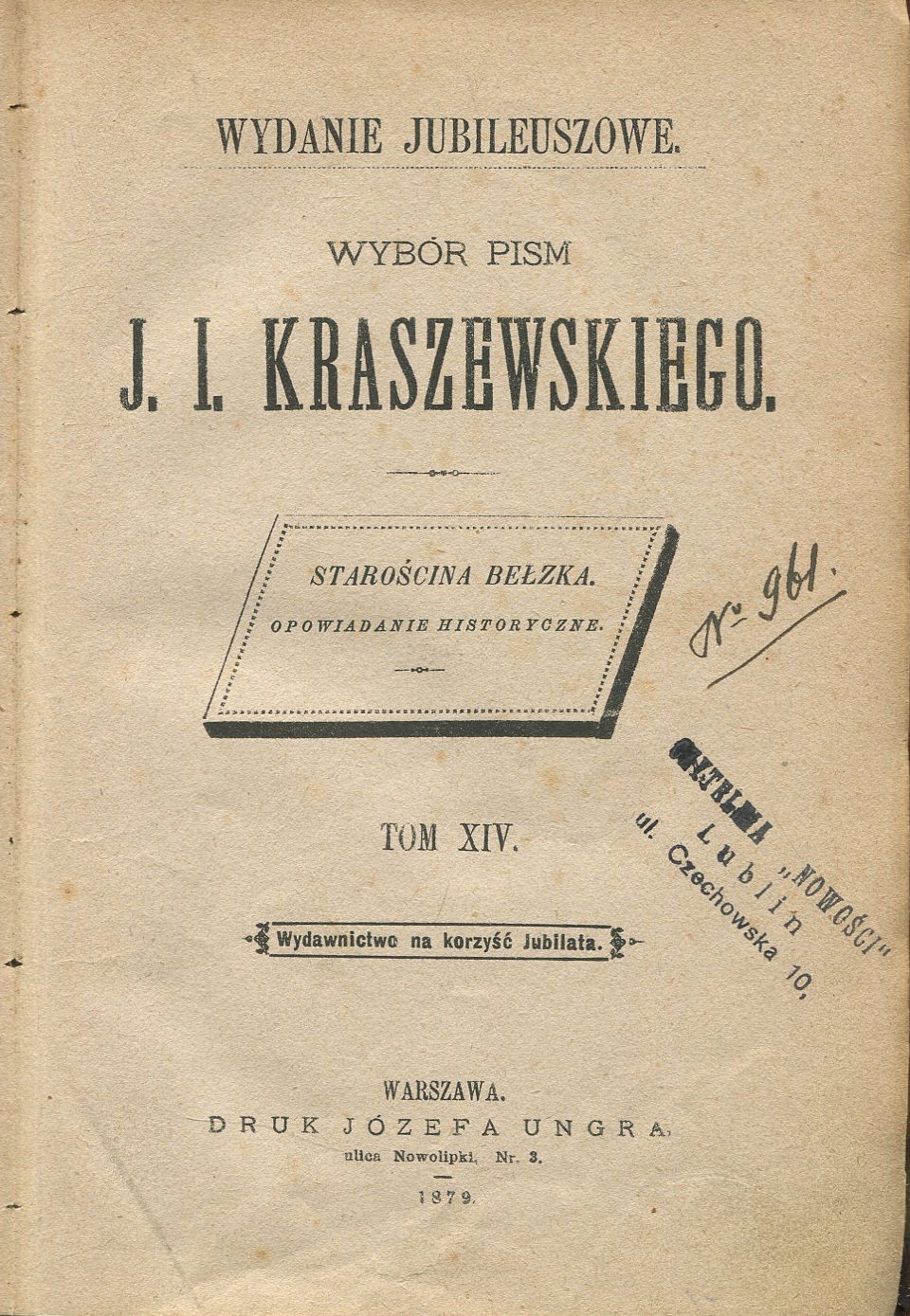 Покупая «Józef Ignacy Kraszewski Starościna Bełzka Gertruda Potocka 1879» данный товар из каталога «Литература» вы можете быть уверены, что после оформления заказа, доставки в Украину, вы получите именно то, что заказывали, в оговоренные сроки и европейского качества.