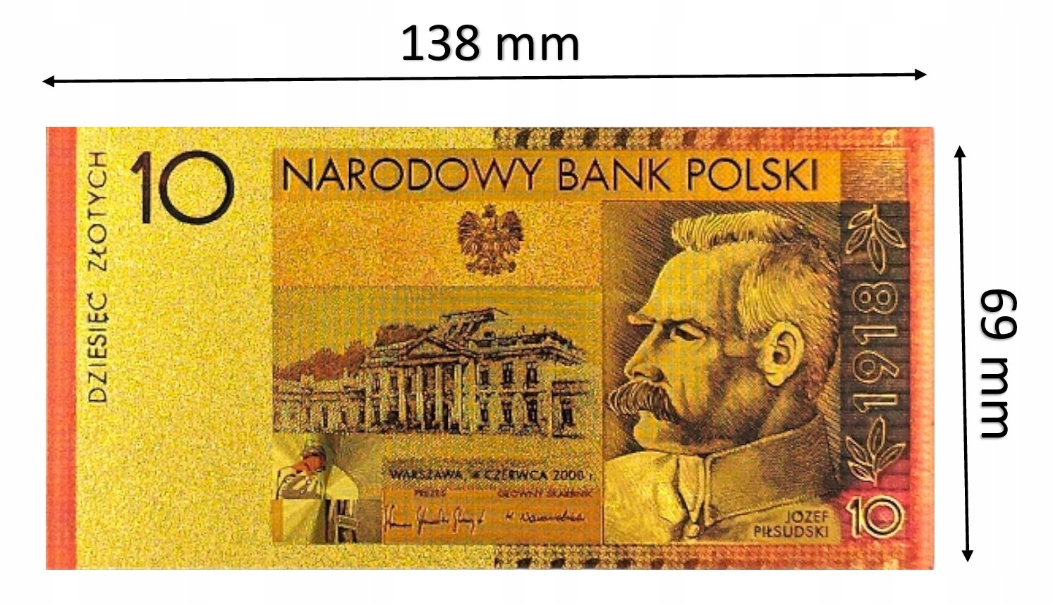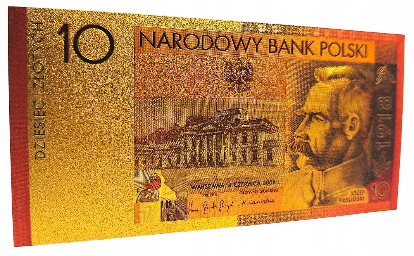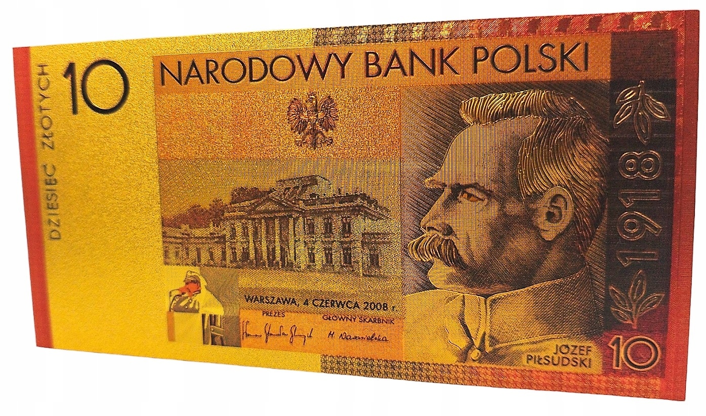 JÓZEF PIŁSUDSKI 10 злотих Позолочена банкнота КОЛЕКЦІЯ