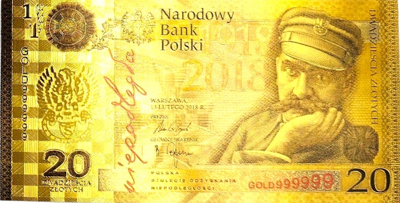 JÓZEF PIŁSUDSKI 20 злотих Позолочена банкнота КОЛЕКЦІЯ