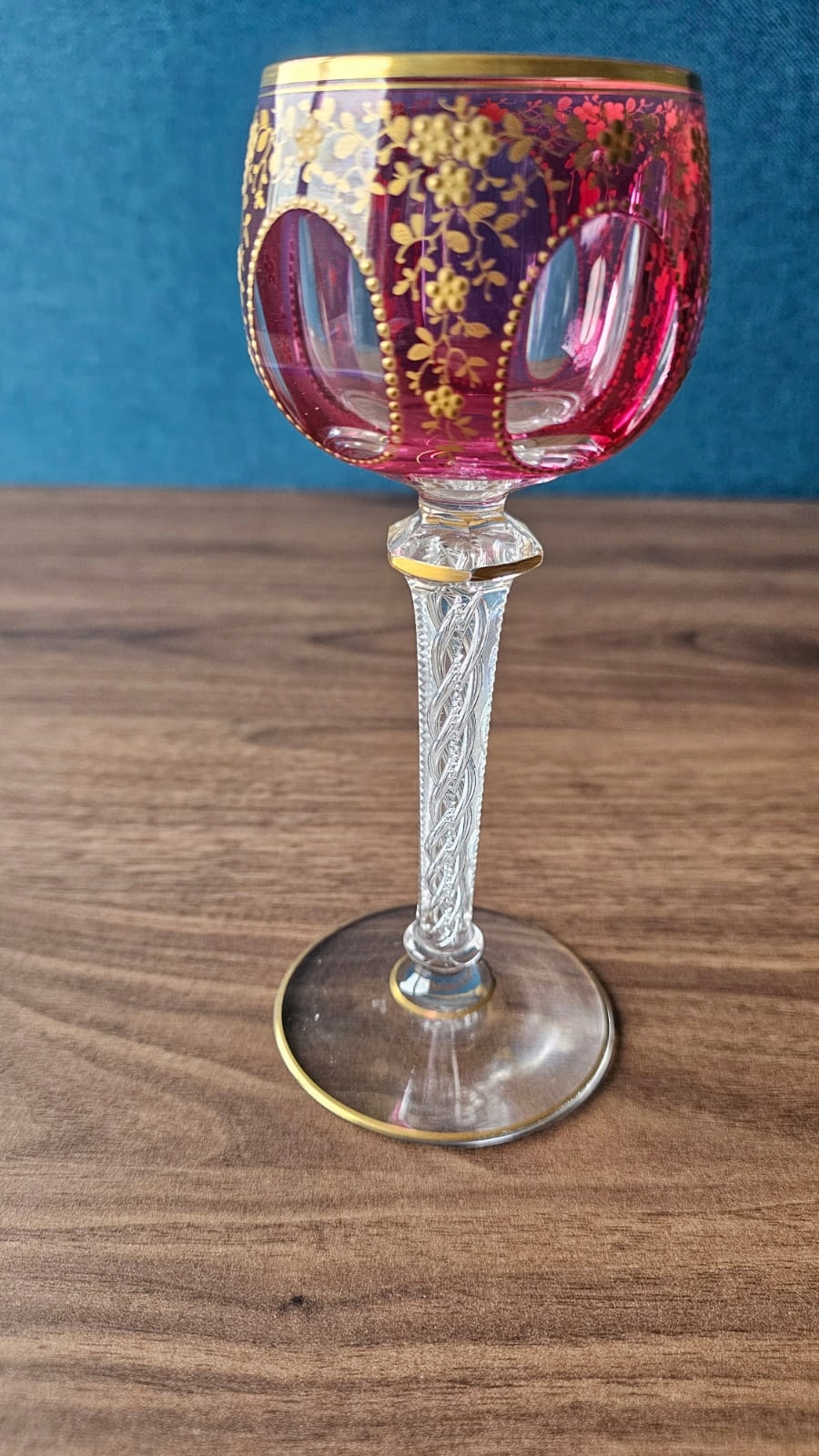 Невероятно красивая, хрустальная чашка коллекционера Józefina стеклянные заводы, сделанная из двойного стекла в рубиновом и прозрачном. Звуковое золото, в ноге филигранной в виде воздушных нитей. Красивое чудо.