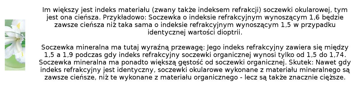 - THINNER UP TO 70,0 % по отношению к СТАНДАРТНЫМ ЛИНЗАМ В ИНДЕКСЕ 1,50 и до 20,0 % по отношению к органическим (пластиковым) ЛИНЗАМ В ИНДЕКСЕ 1,74