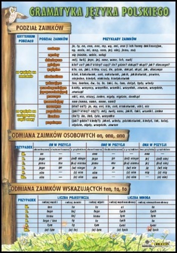 Język Polski POMOCE plansz GRAMATYKA zaimki podzia