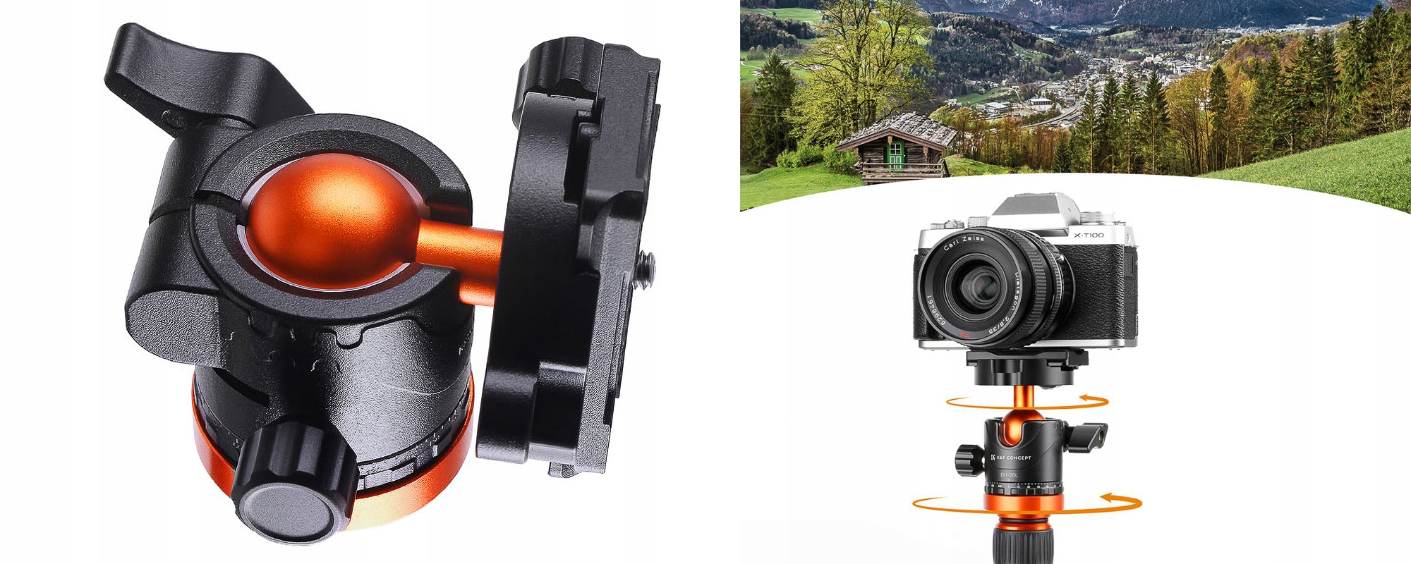 Head K & F Concept BH-28L оснащены быстрой сборкой сборки, которая позволяет мгновенно установить DSLR, камеры и другие устройства на 1/4 дюйма. 3/8 дюйма на дне головы позволяет легко соединяться с широким диапазоном штатива, моноподами или Sliders. Адаптер 1/4 дюйма дополнительно увеличивает его совместимость. Универсальность BH-28L позволяет быстро изменить конфигурацию оборудования, благодаря которой она идеально подходит как для спокойных, так и для динамичных фотосессии. линзы.