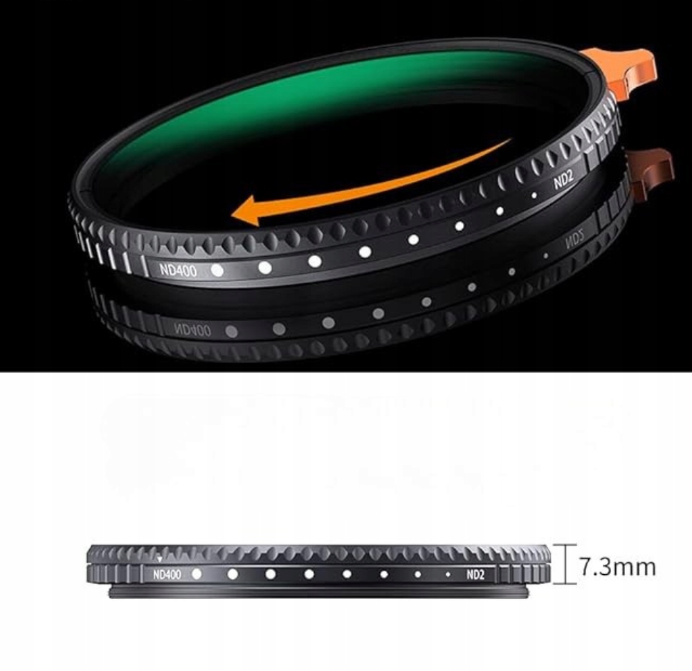 - Регулируемый диапазон ND2-ND400 — светоуменьшение от 1 до 9 градусов диафрагмы