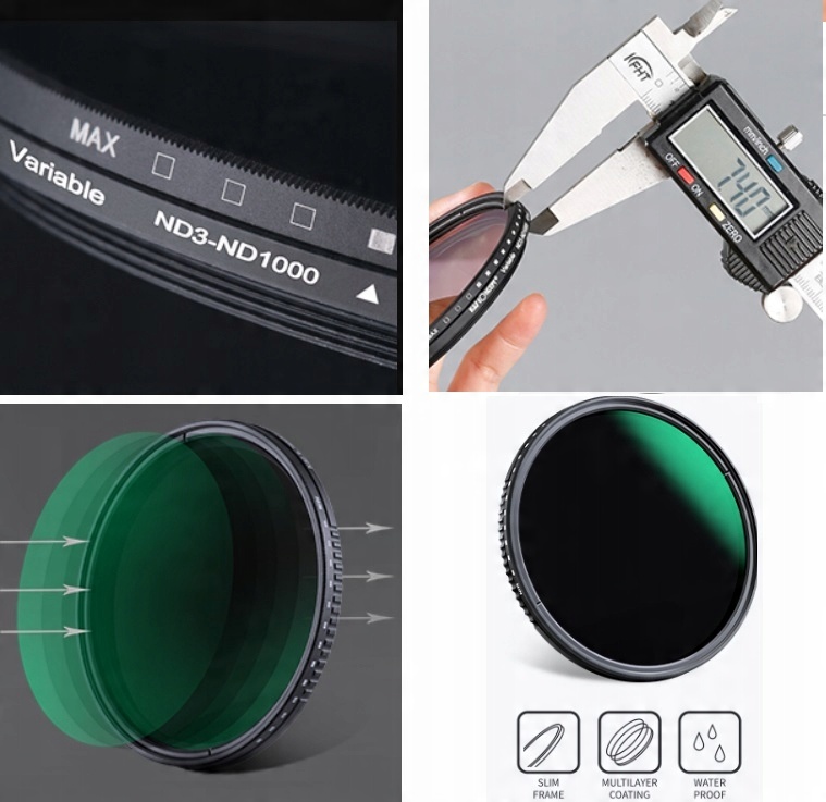 K & F концепция подготовила превосходный, плавно регулируемый серый фильтр в поле ND3 - ND1000. Фильтр позволяет вам контролировать количество, которые в течение определенного момента попадают в линзу. рек, водопадов, движущихся объектов) или используйте открытую апертуру со вспышкой лампы, чтобы избежать x -Rays. Рекомендуется использовать его при фотографировании восхода и заката
