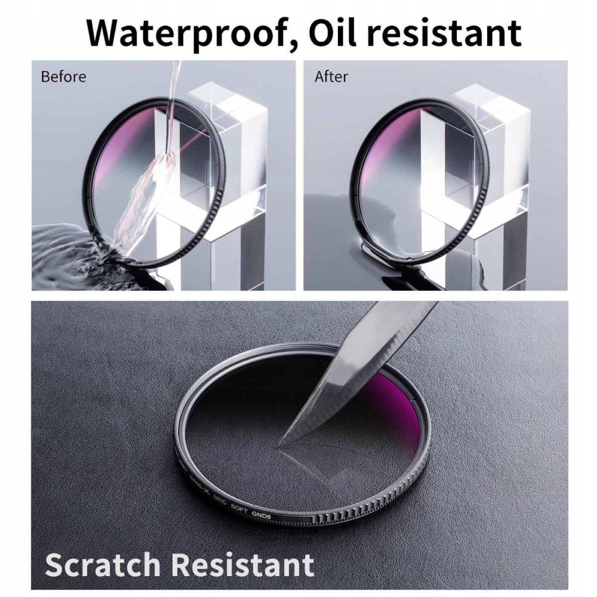 Полусерый фильтр K&F Concept с мягким градационным переходом. Затемняет изображение на середине фильтра, плавно переходя от прозрачности к плотности на 3 ступени.