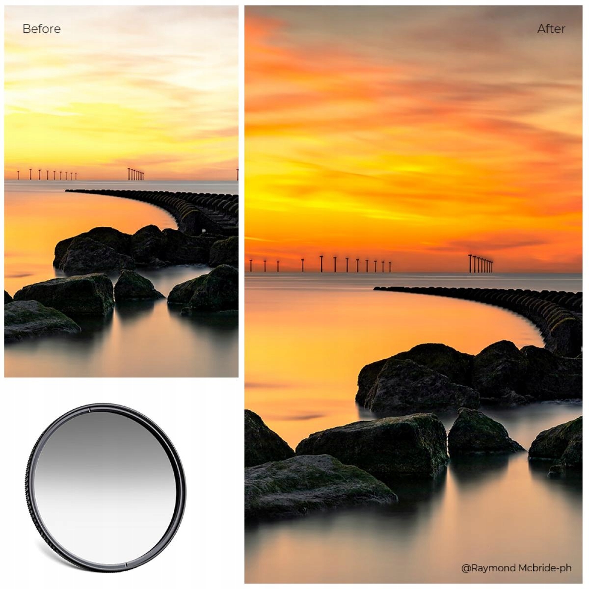 половинный серый фильтр от концепции k & f b> с мягким переходом градации. Темнеет изображение в середине фильтра, мягко проходя от прозрачности до плотности 3 диафрагмы.