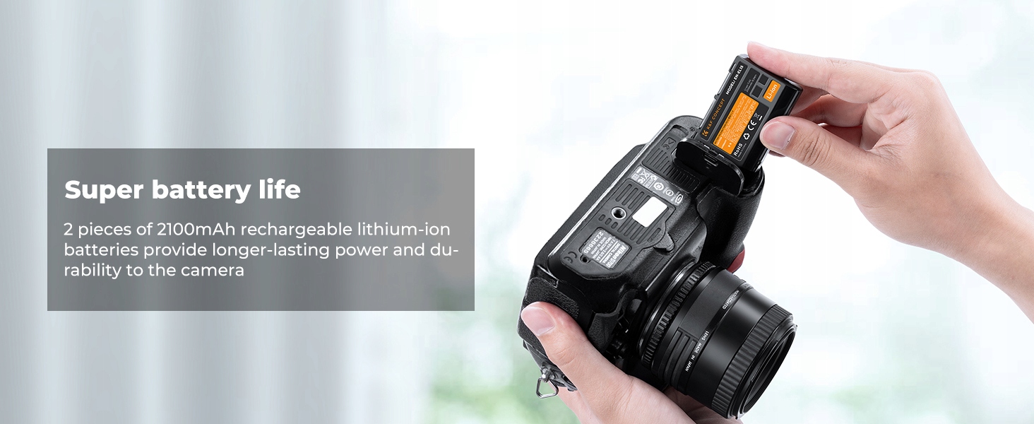 В комплект входят две замены аккумулятора EN-EL15, в котором используются элементы самого высокого качества и умная система, регулирующая процесс зарядки.