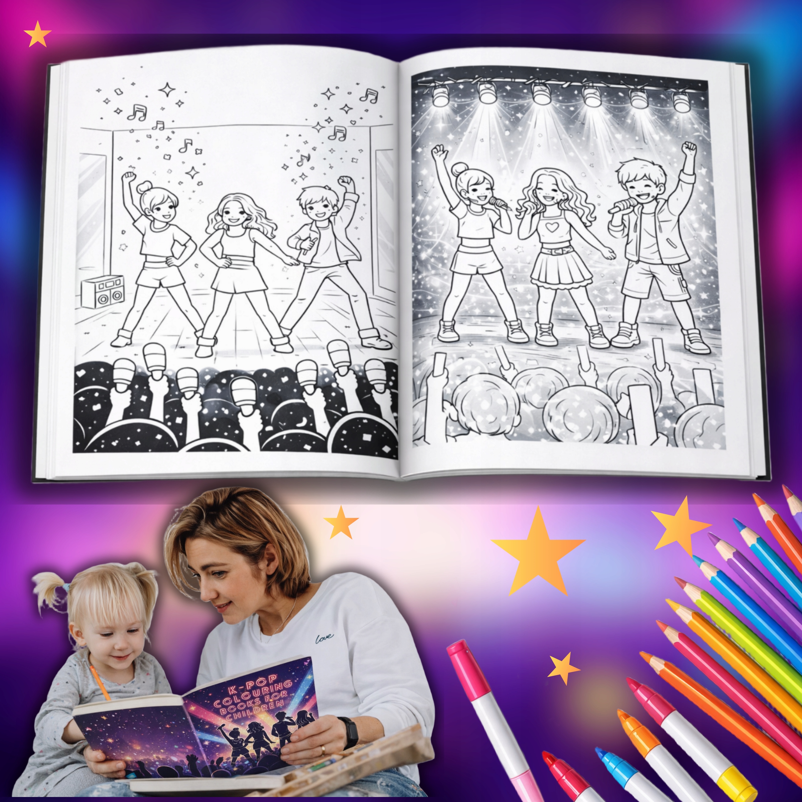 Эта книжка-раскраска — больше, чем просто рисование — это времяпровождение ребенка вместе с родителями и творческое развлечение, вдохновленное миром K-POP.