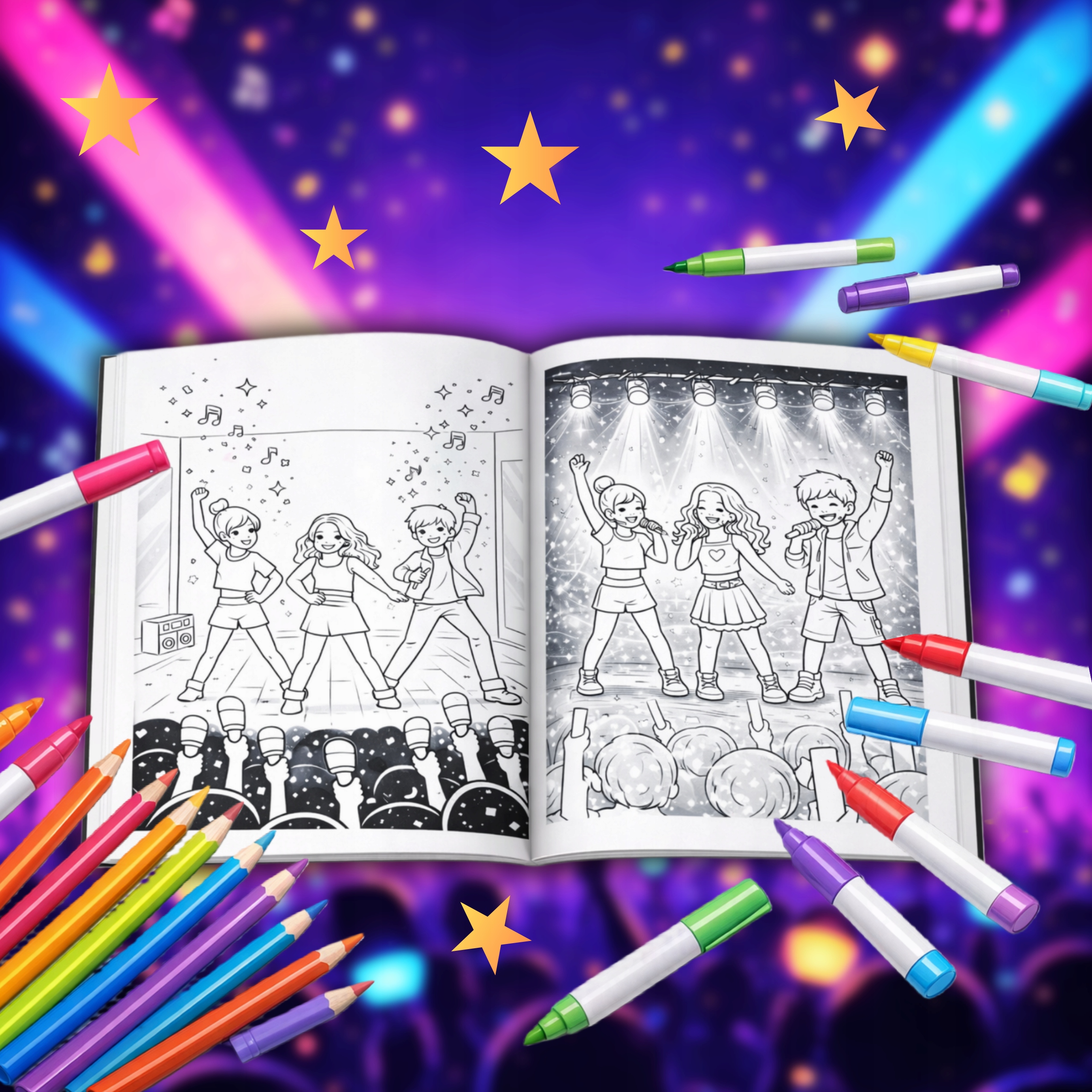 Эта книжка-раскраска представляет собой идеальное сочетание сценической энергии, детского творчества и тихого, автономного веселья — разработана специально для детей от 4 лет.