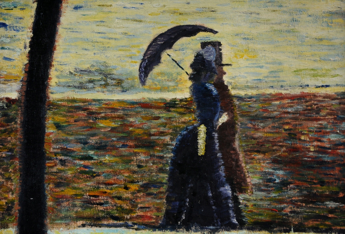 К. Бертрам "Пар под зонтиком" Уникальная красивая нефтяная картина !!!