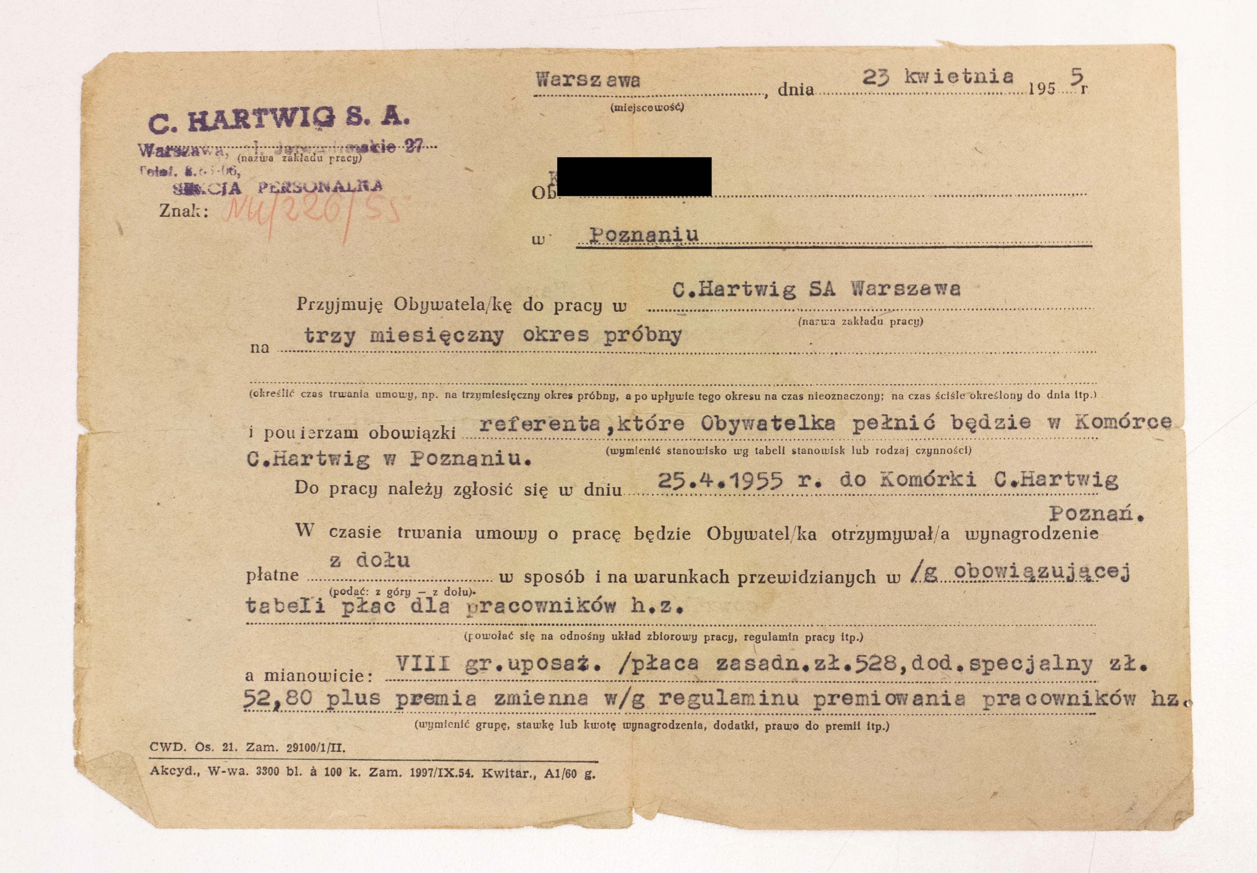 С. ХАРТВИГ ВАРШАВА - РАБОТА 1953 ГОДА