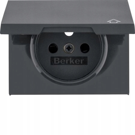 К. Лицевая панель розетки с заземлением и крышкой, антрацит Berker,3965777106