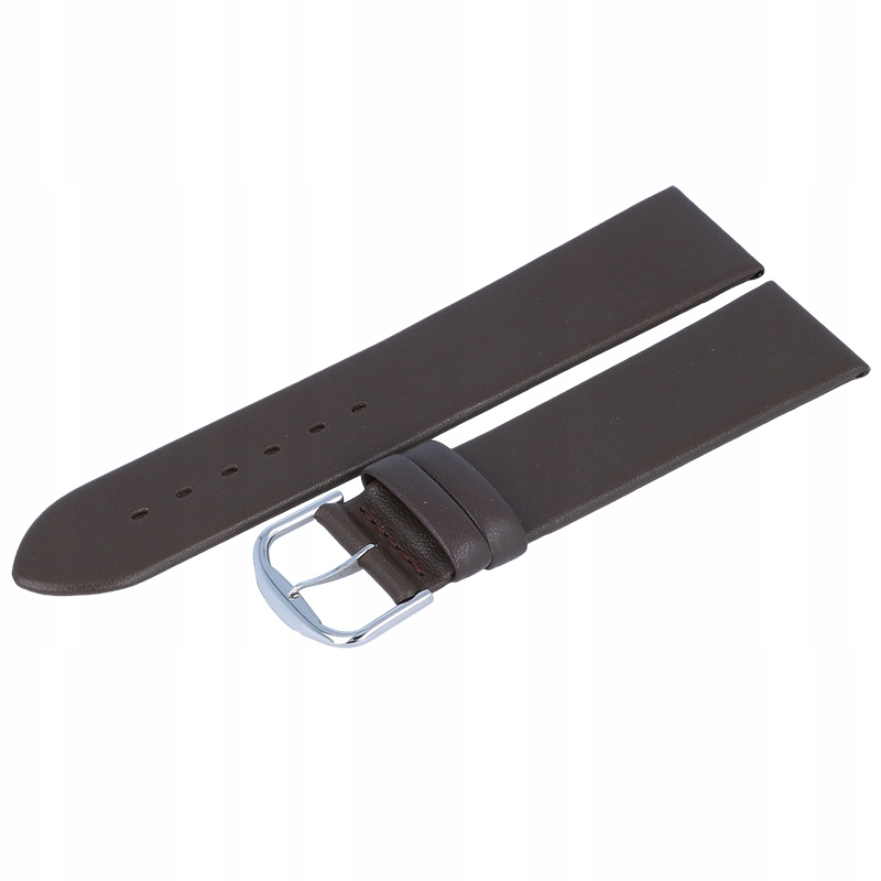 Ремень изготовлен из прочной натуральной кожи, имеет классический крой и приглушенный внешний вид. Ремень плоский, без структуры, с серебряной пряжкой. Изделие не вызывает аллергии на коже, идеально прилегает к запястью и прекрасно подчеркивает внешний вид носимых часов.