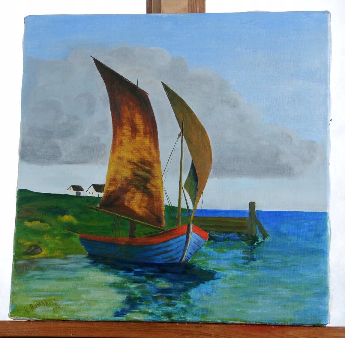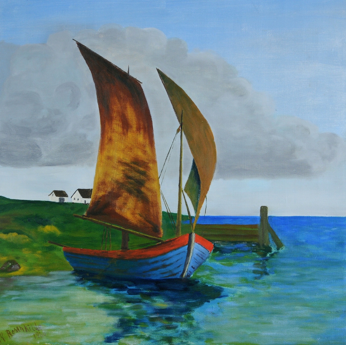 К. РОЗЕНКІЛЬДЕ "РИБАЛЬСЬКИЙ ЧОВЕН З ВІТРИЛОМ" КАРТИНА МАСЛОМ 1966!!!