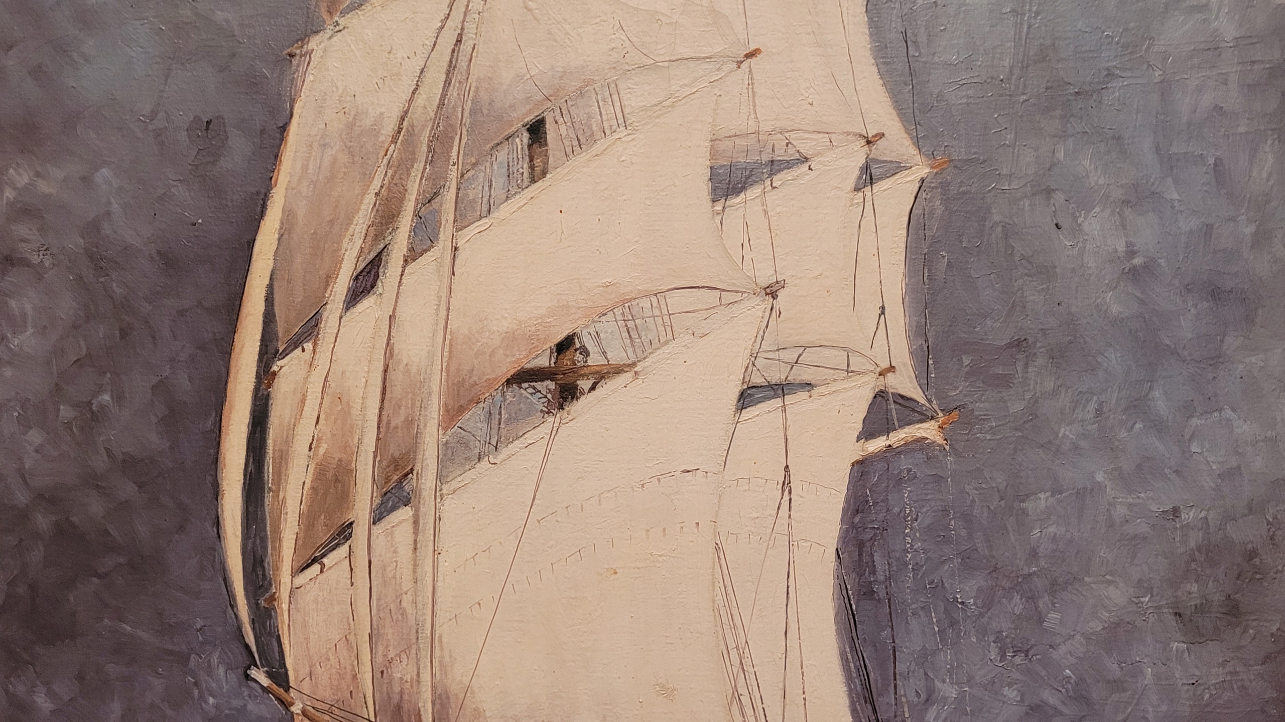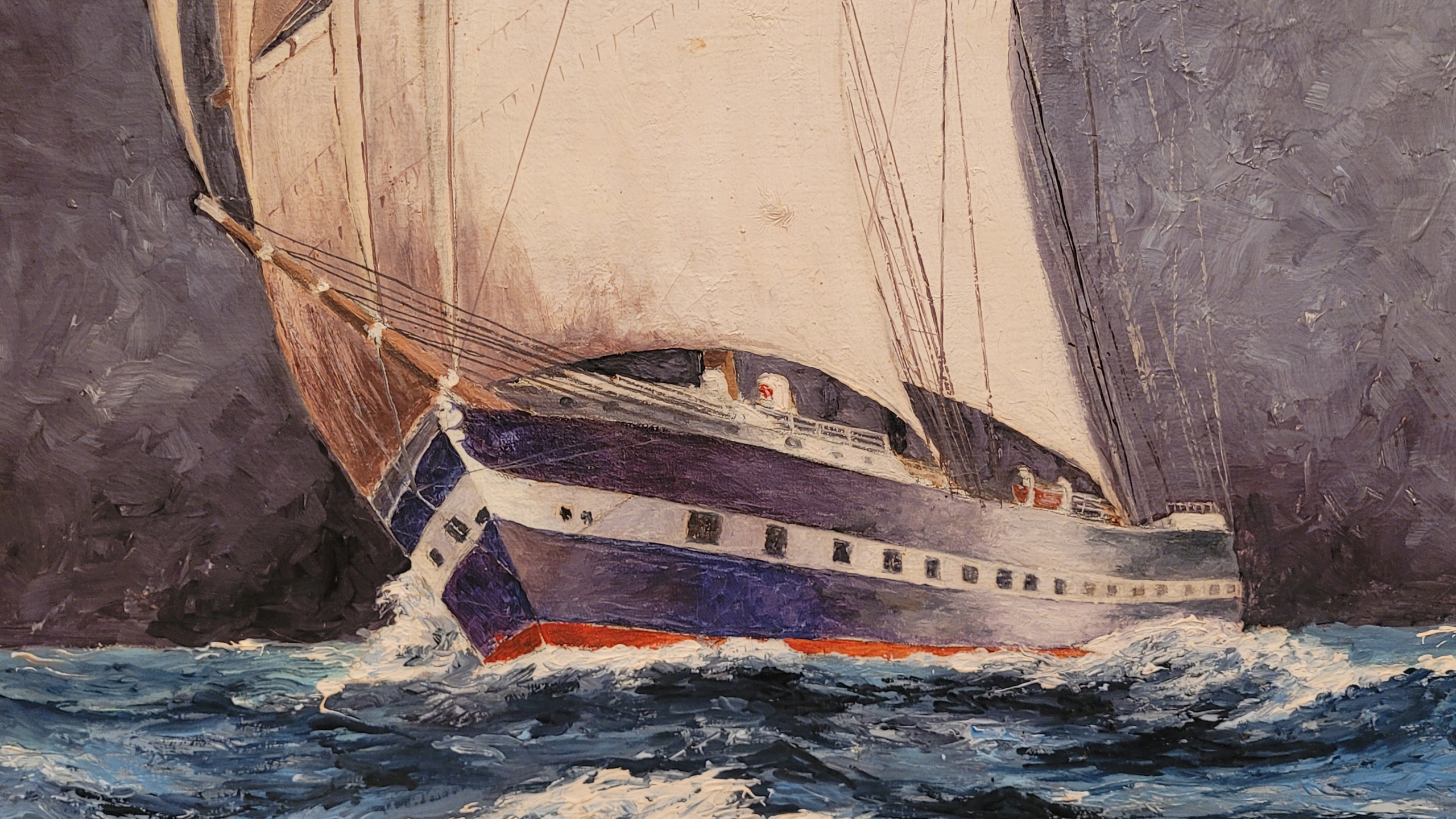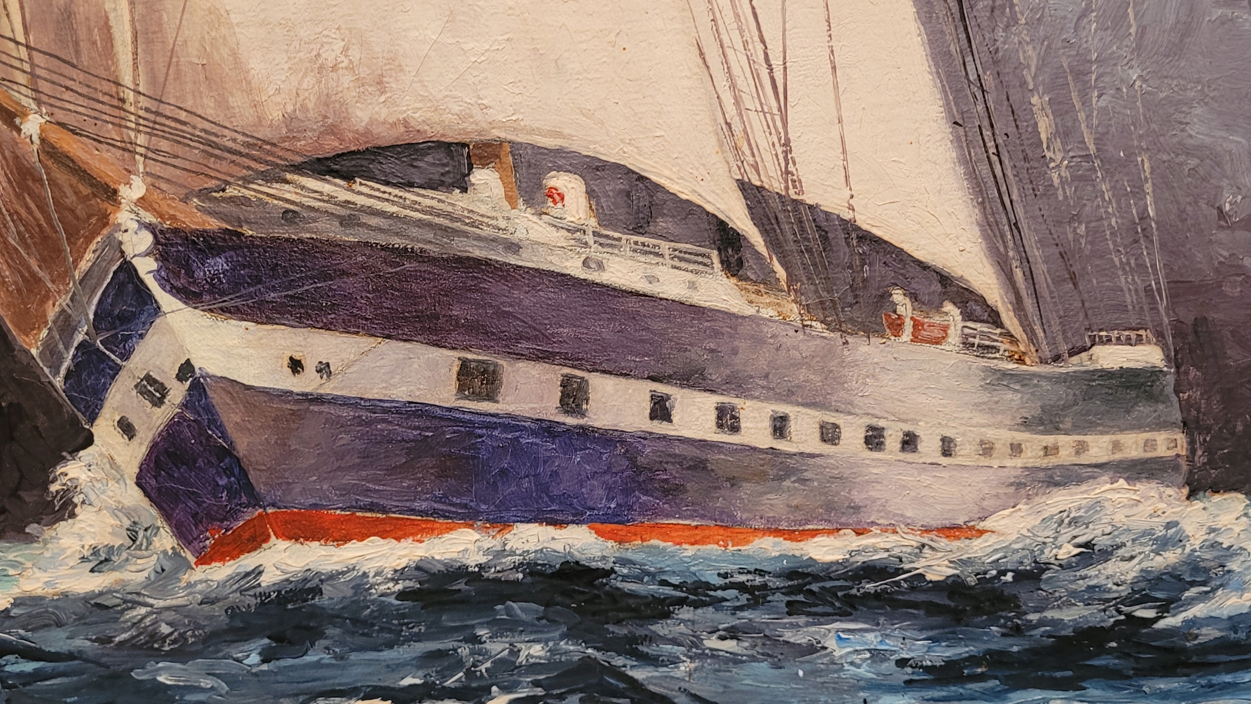 Объект продажи - красивая старая нефтяная картина "парусное судно".