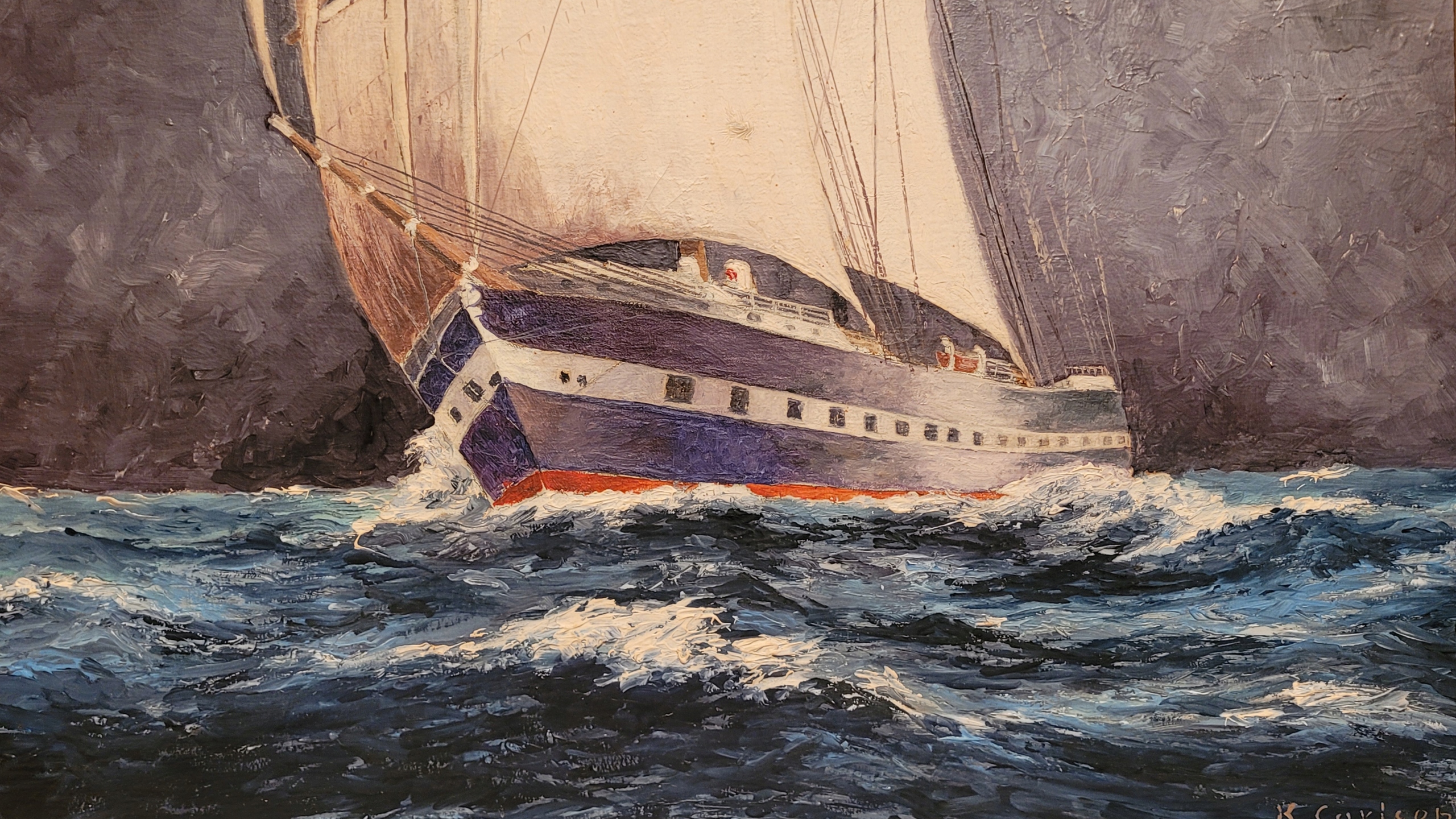 K.CARLSEN - «Парусный спорт», красивая нефтяная картина.
