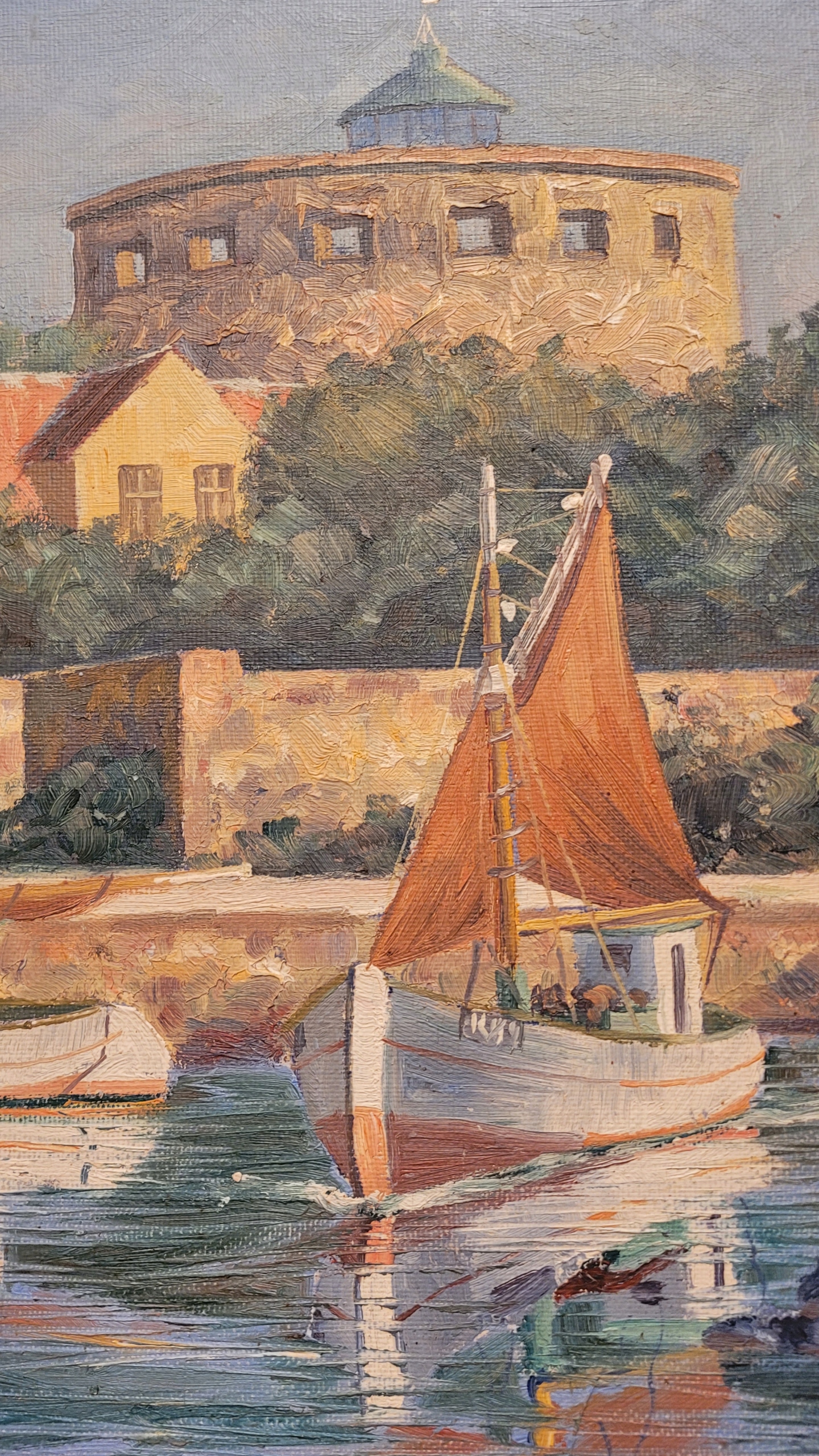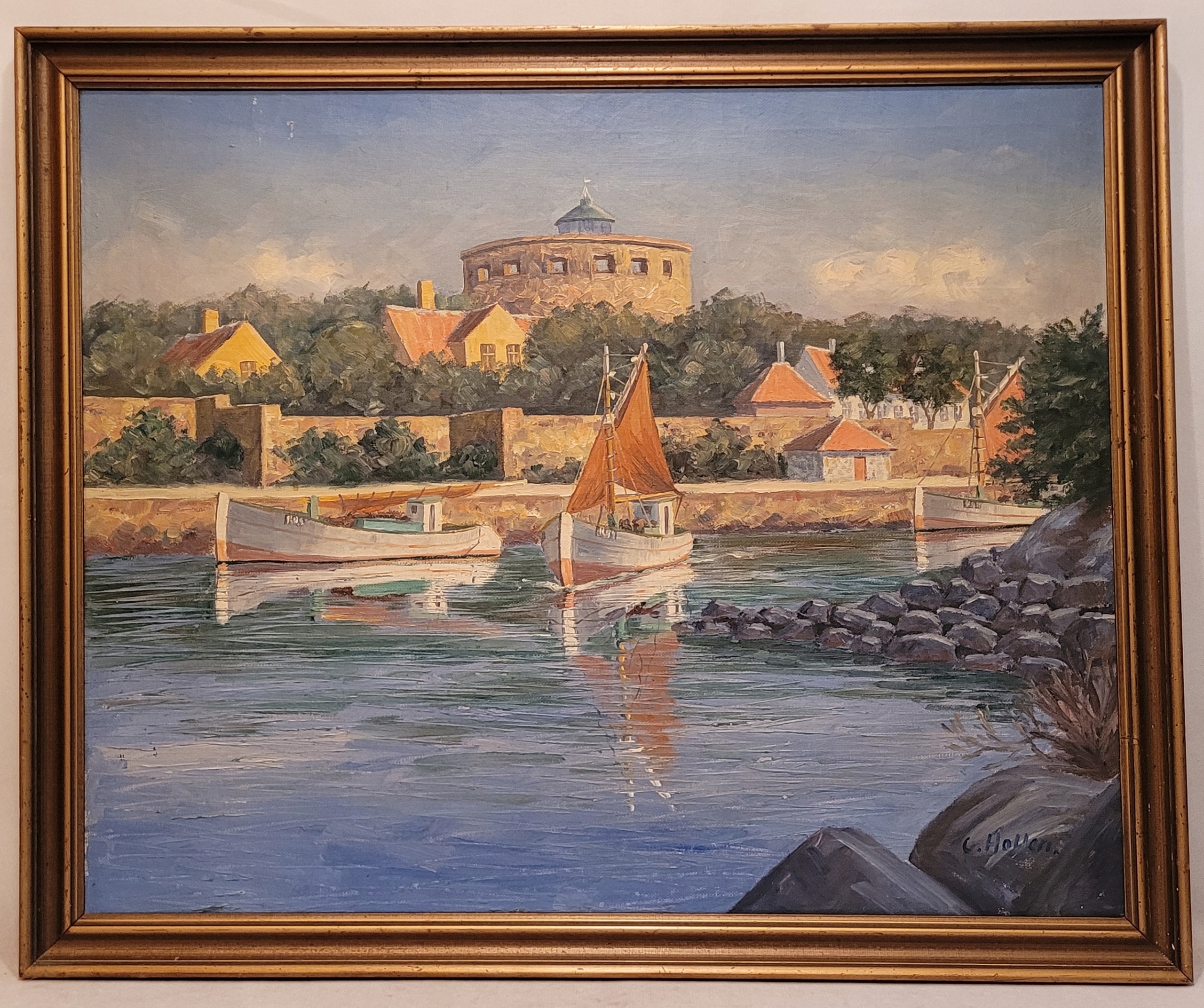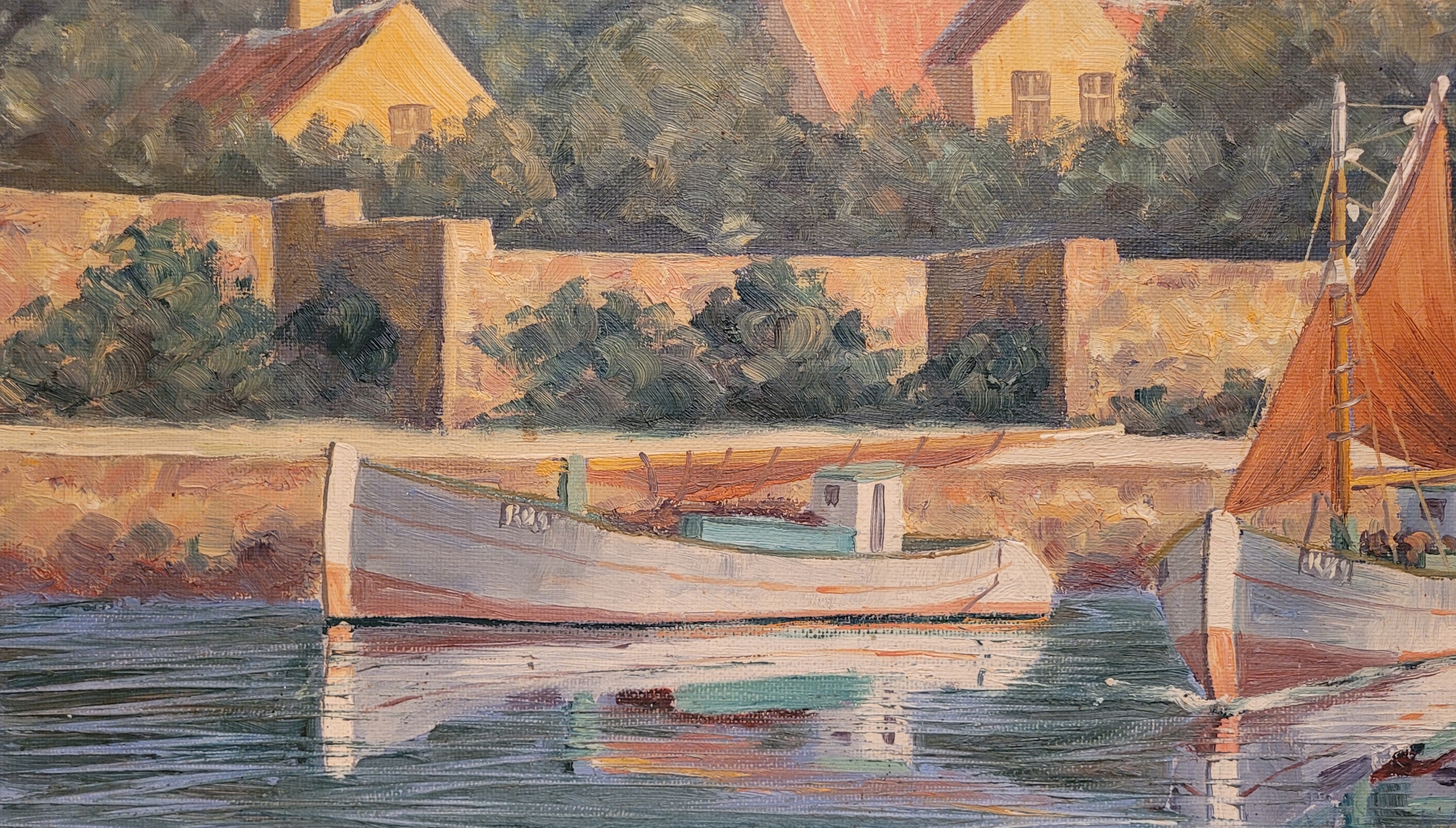 К.ХОЛЛЕН - «РЫБАЛОЧНЫЕ ЛОДКИ», старая картина маслом.