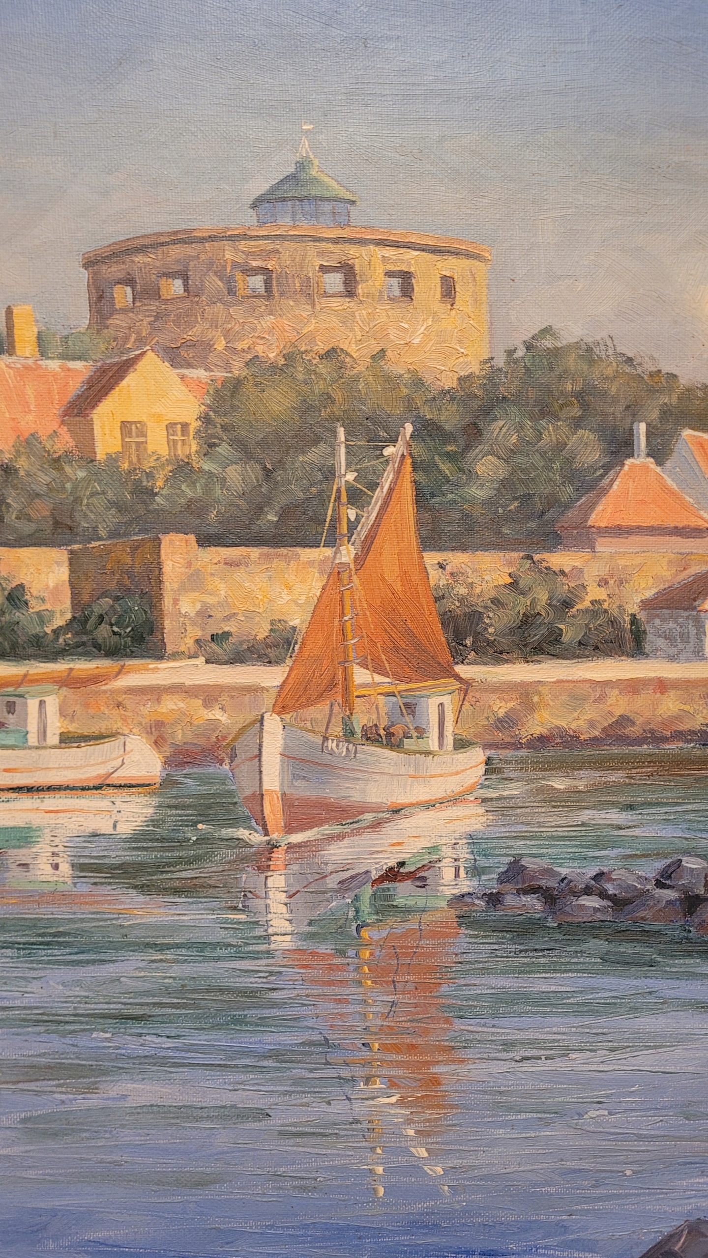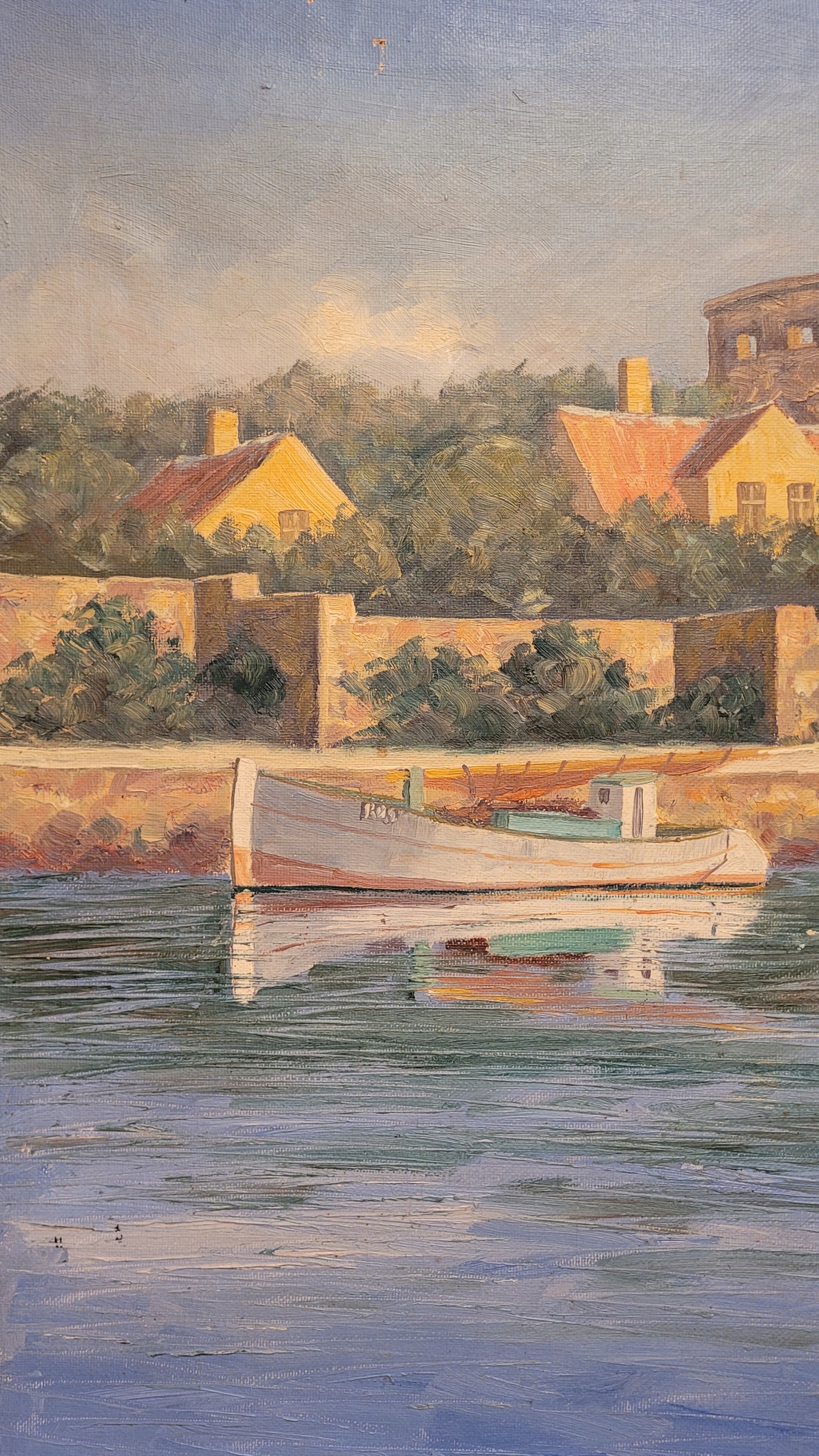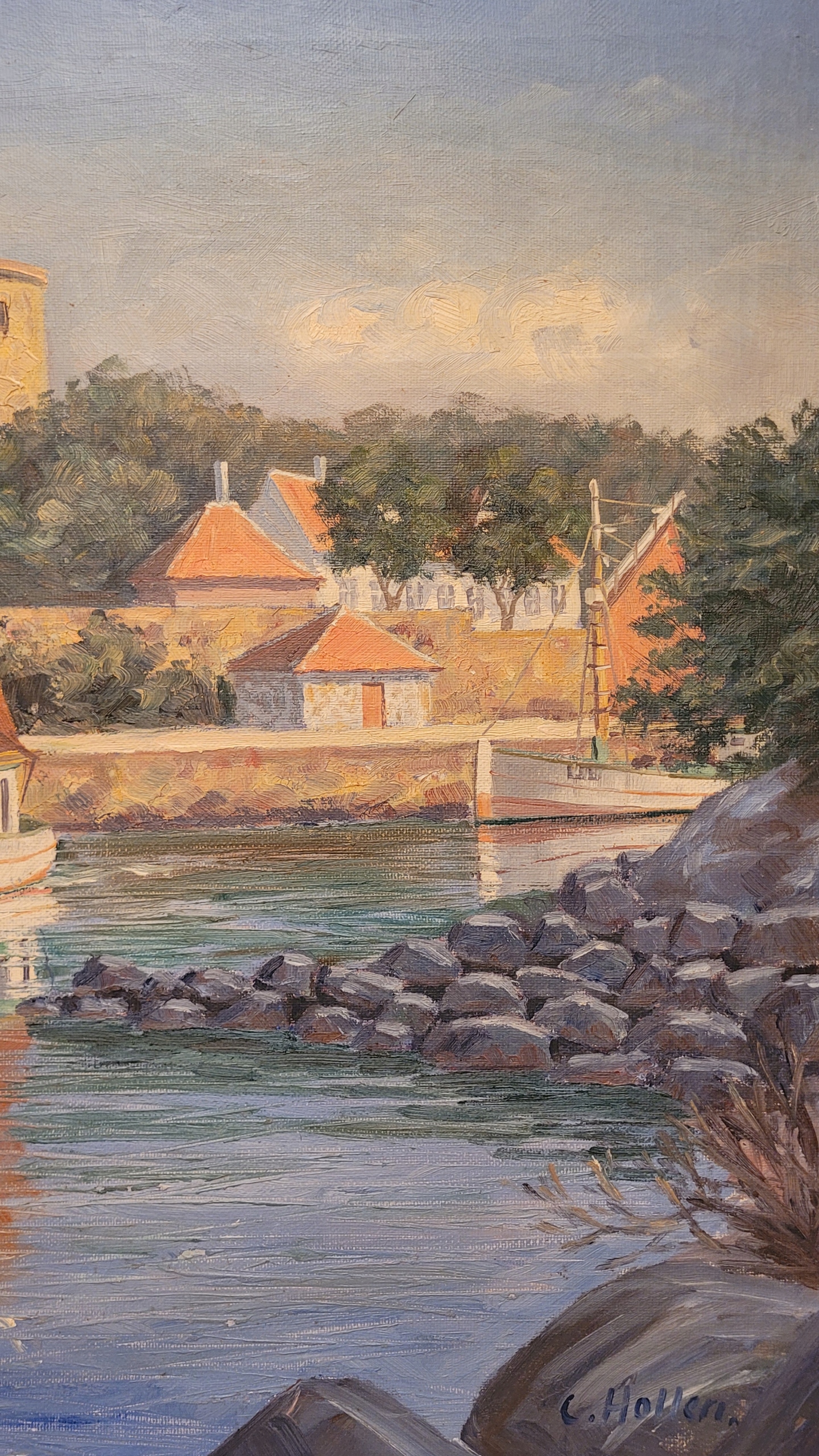 К.ХОЛЛЕН - «РЫБАЛОЧНЫЕ ЛОДКИ», старая картина маслом.