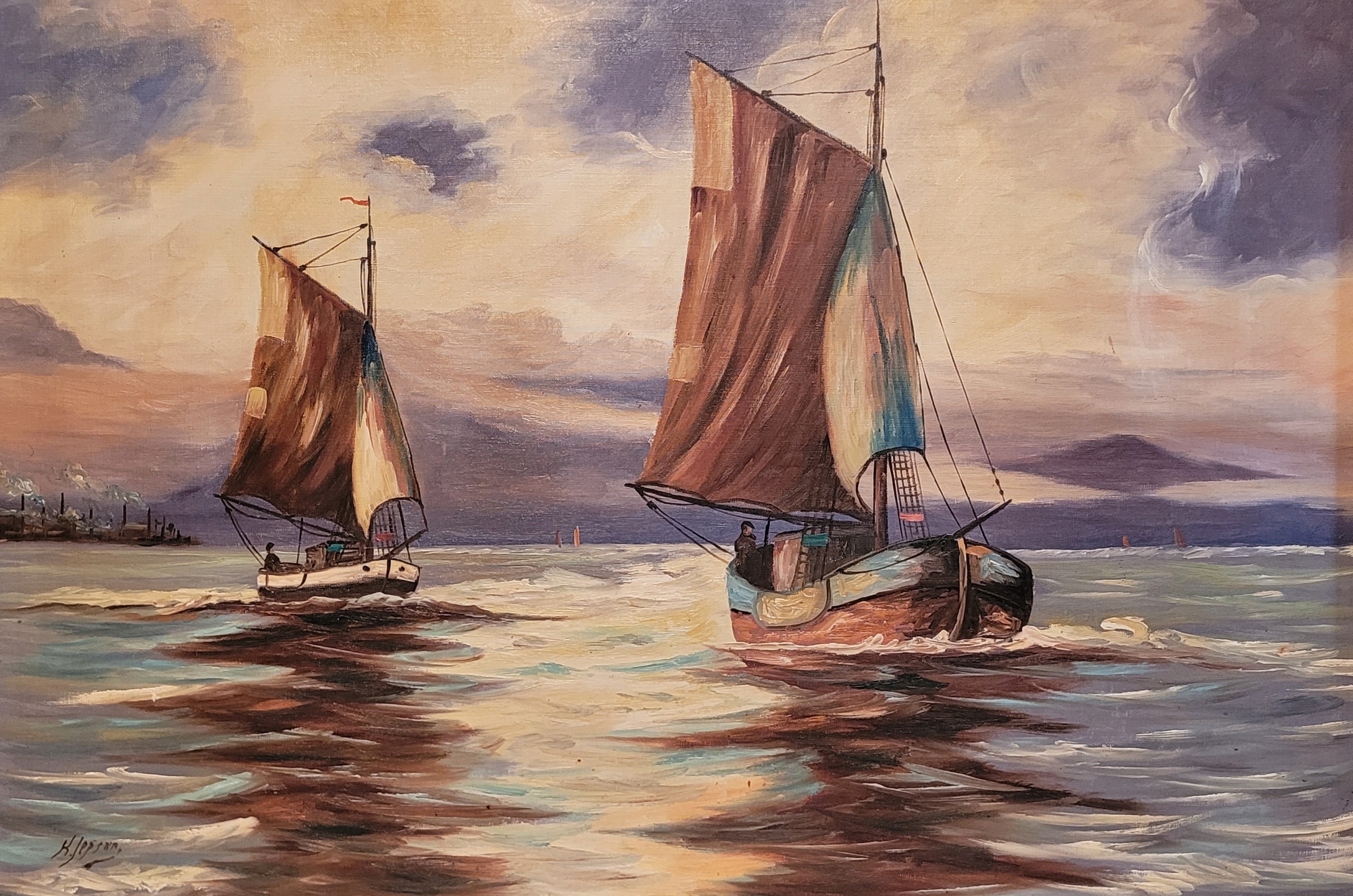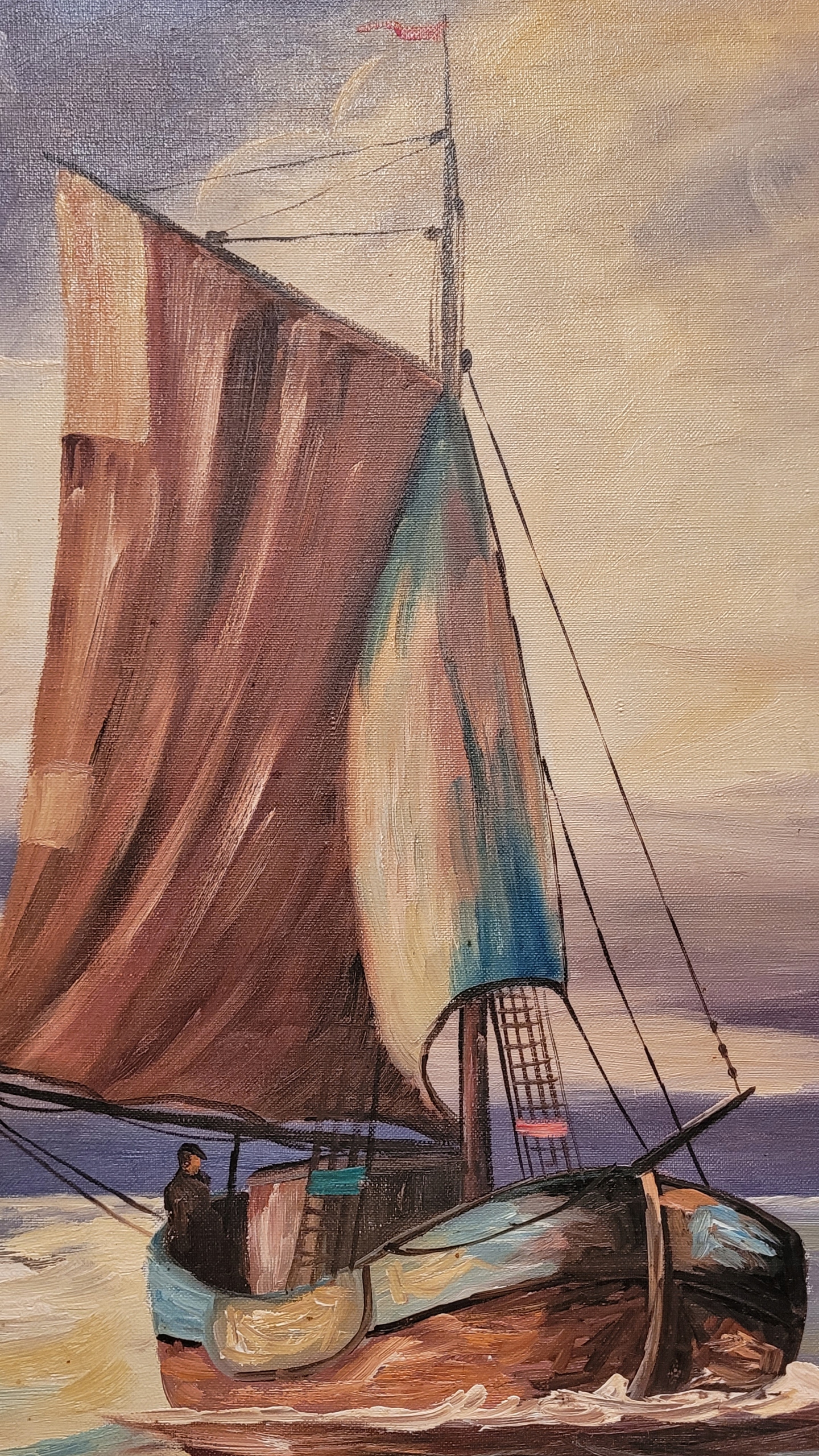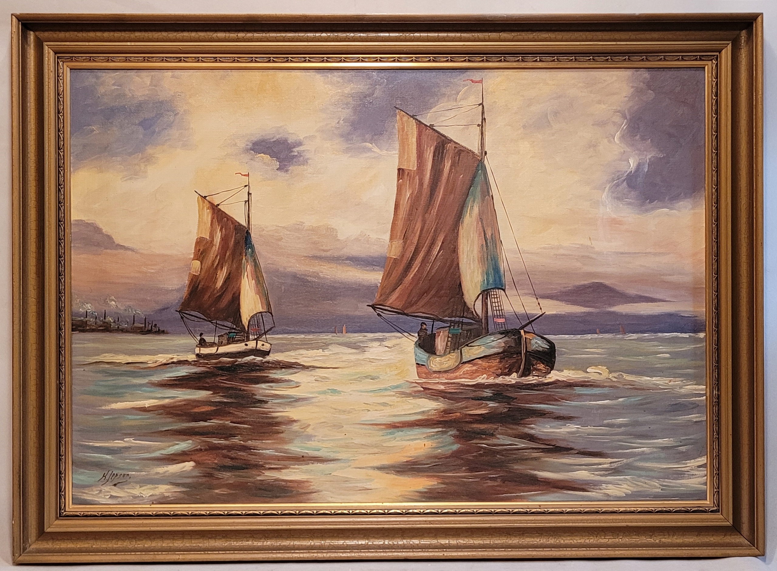 Предмет продажи - красивая, старинная картина маслом «РЫБЬЦОВЫЕ ЛОДКИ».