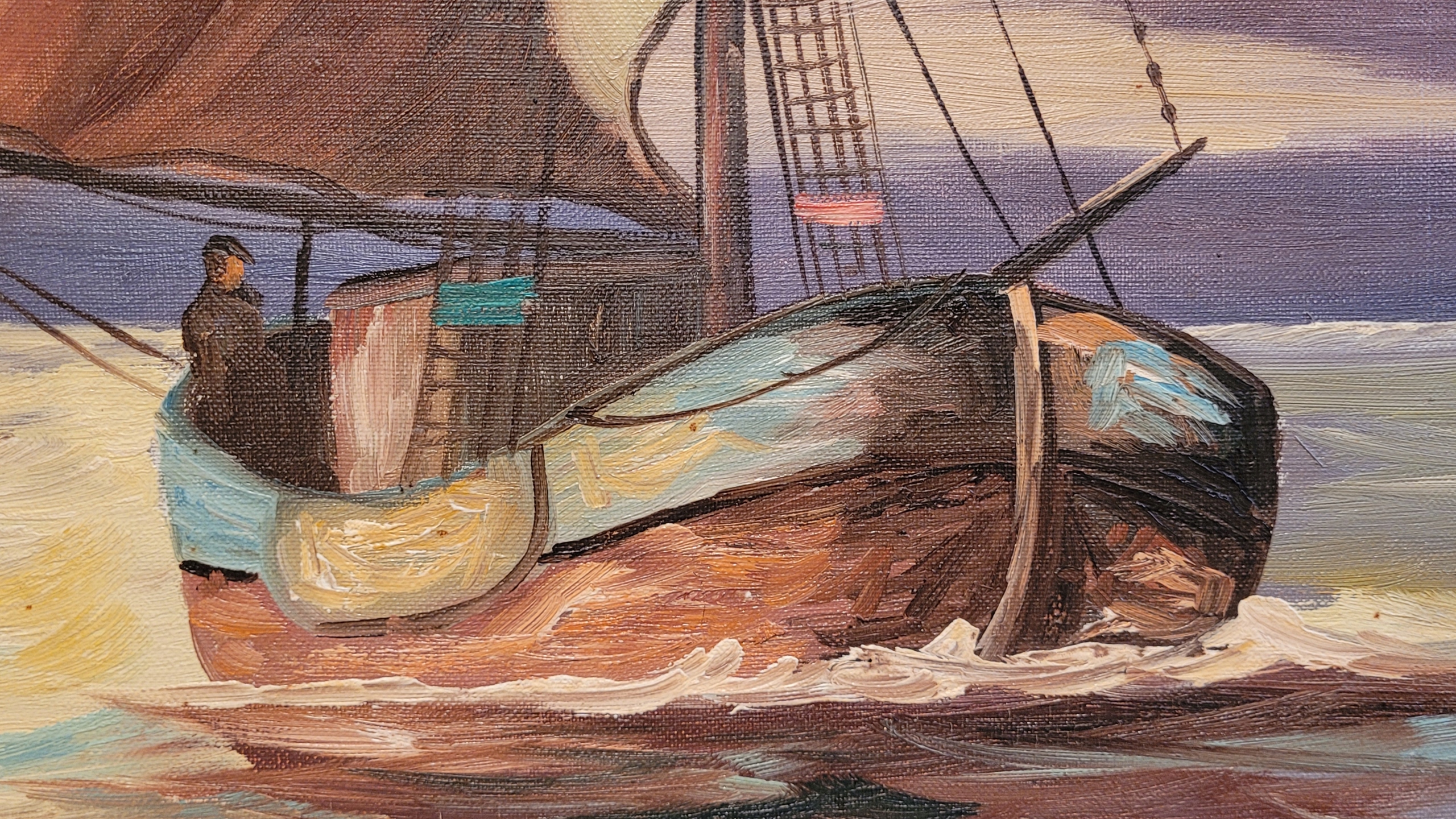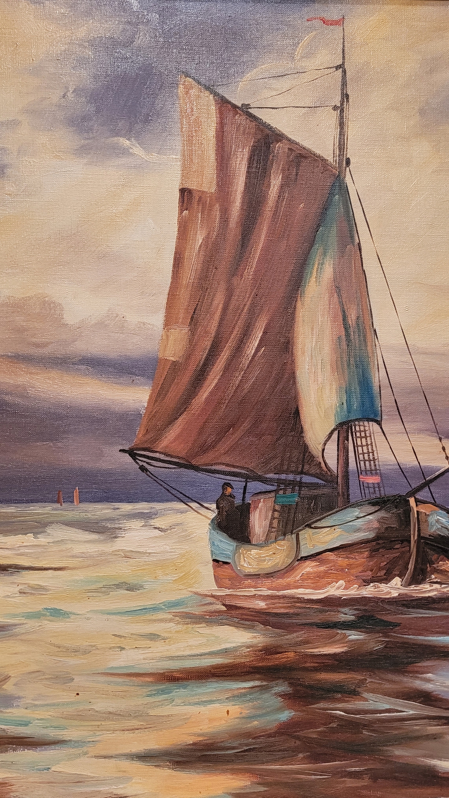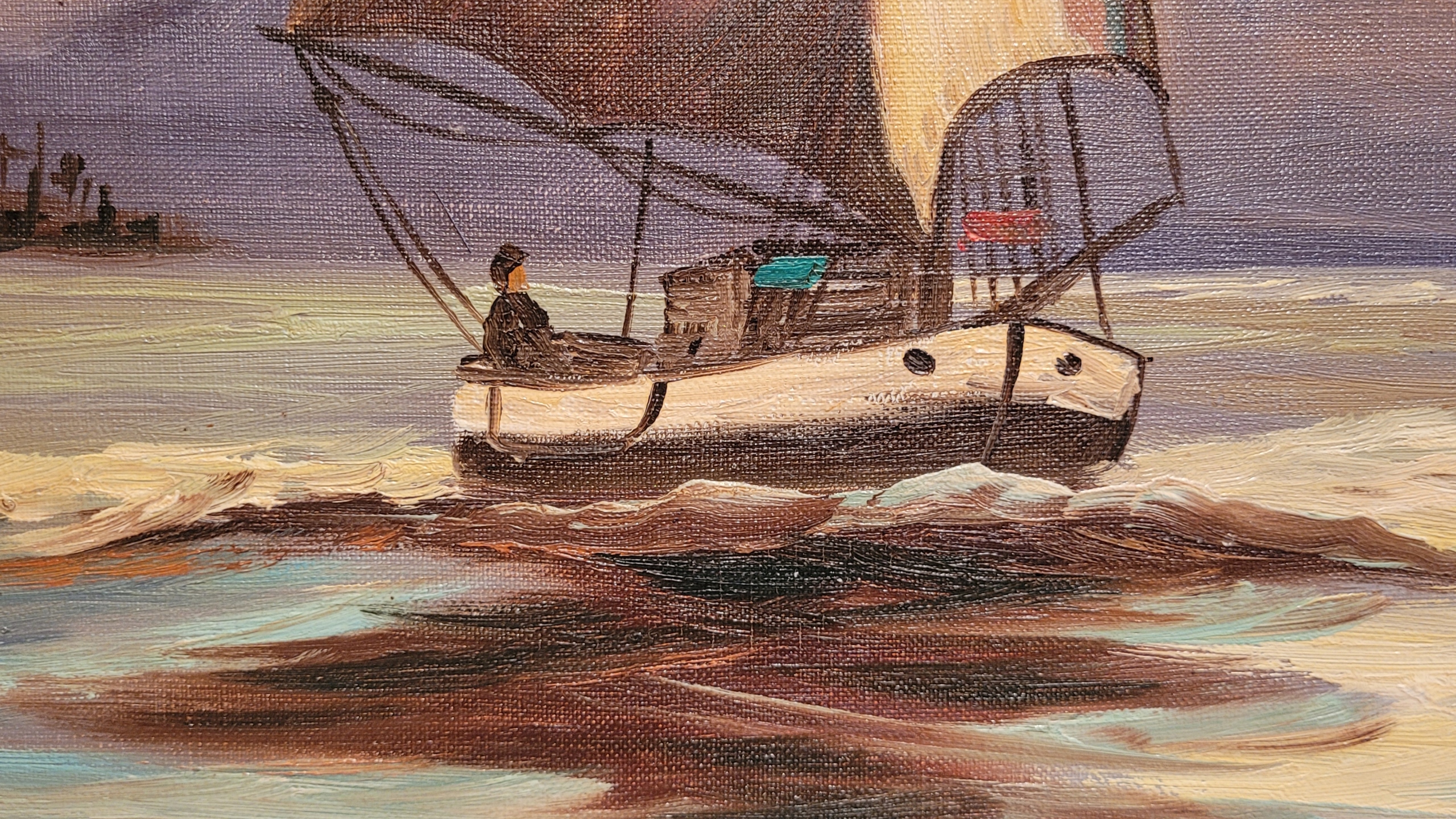 Предмет продажи - красивая, старинная картина маслом «РЫБЬЦОВЫЕ ЛОДКИ».